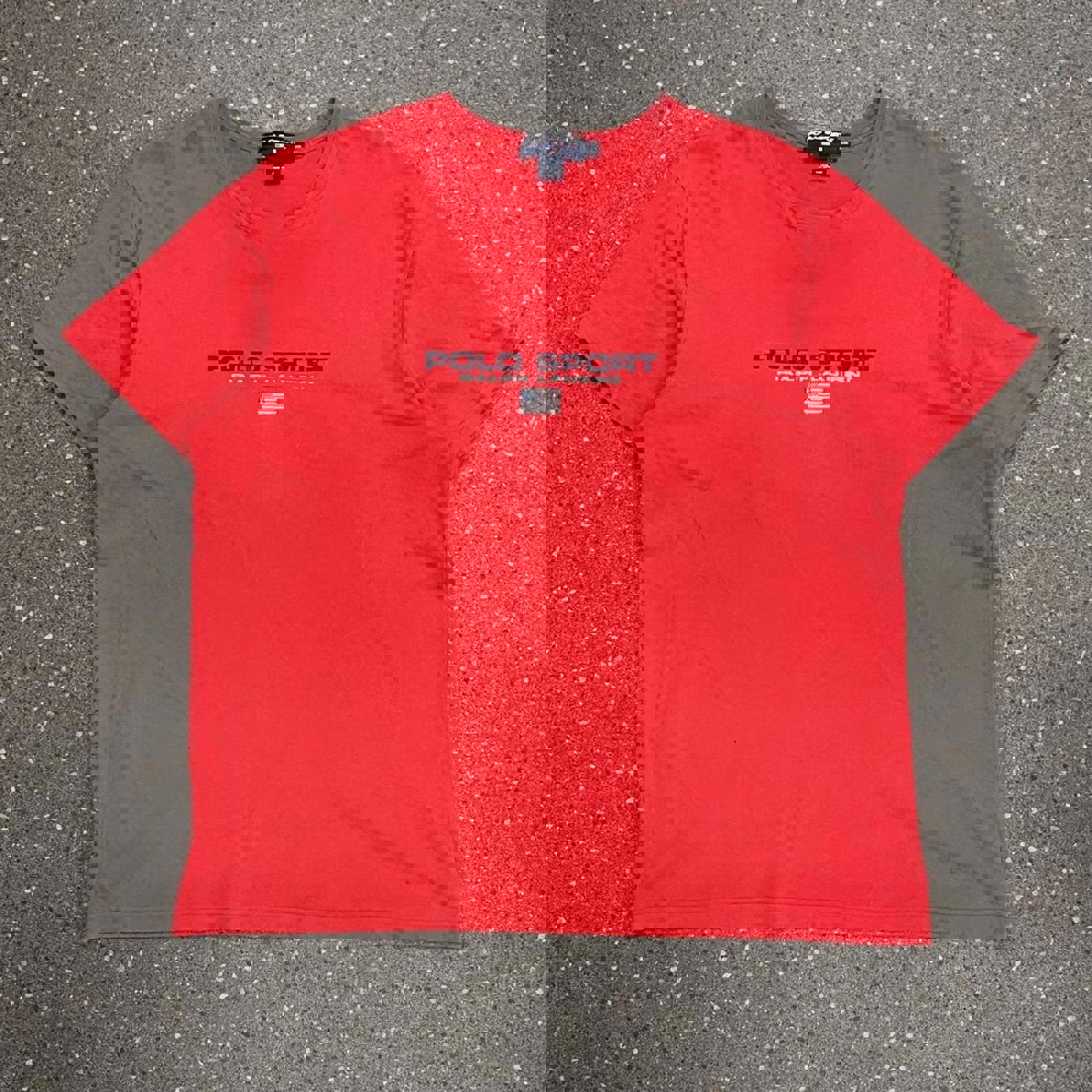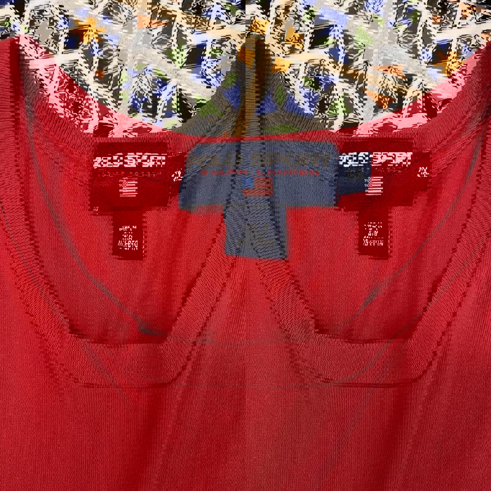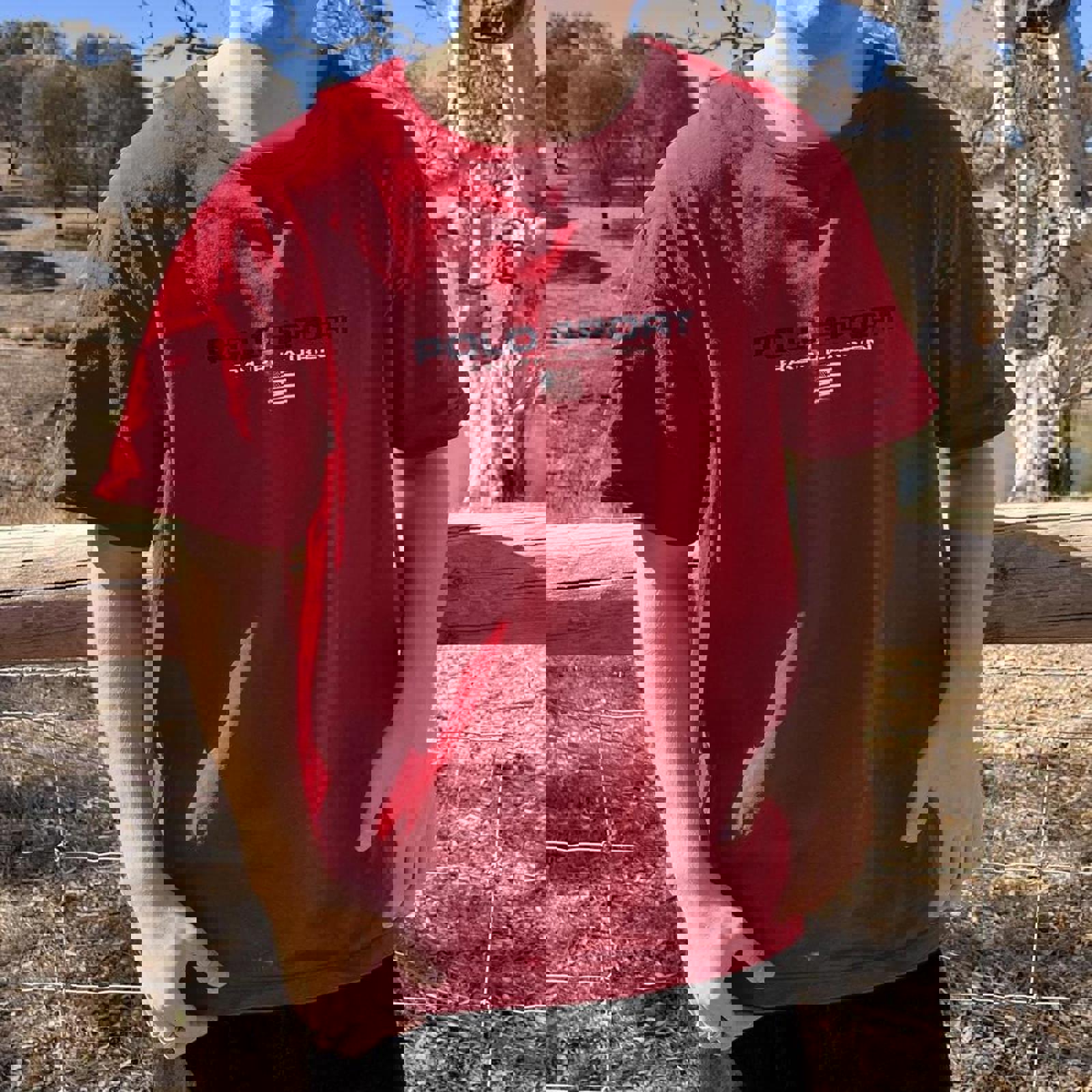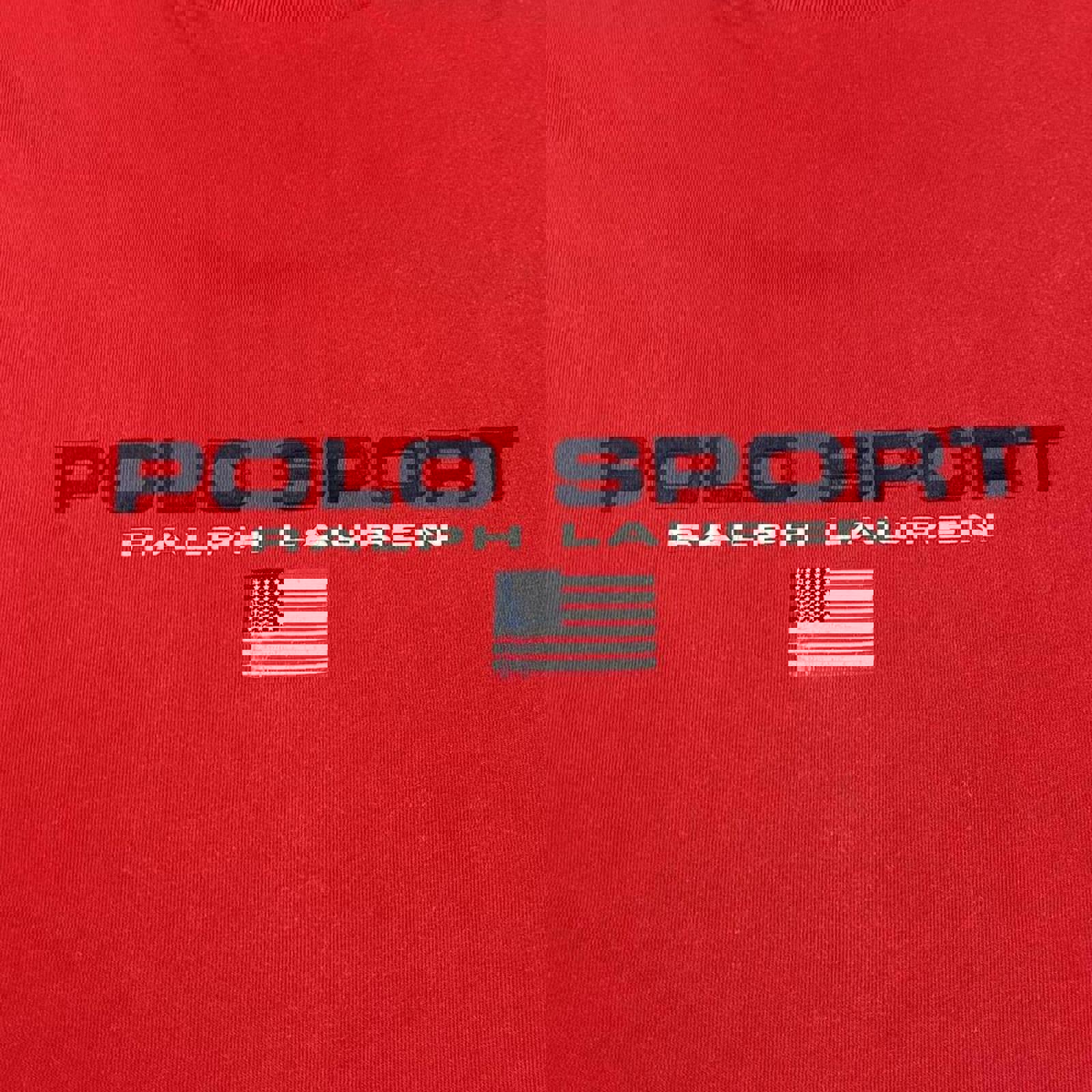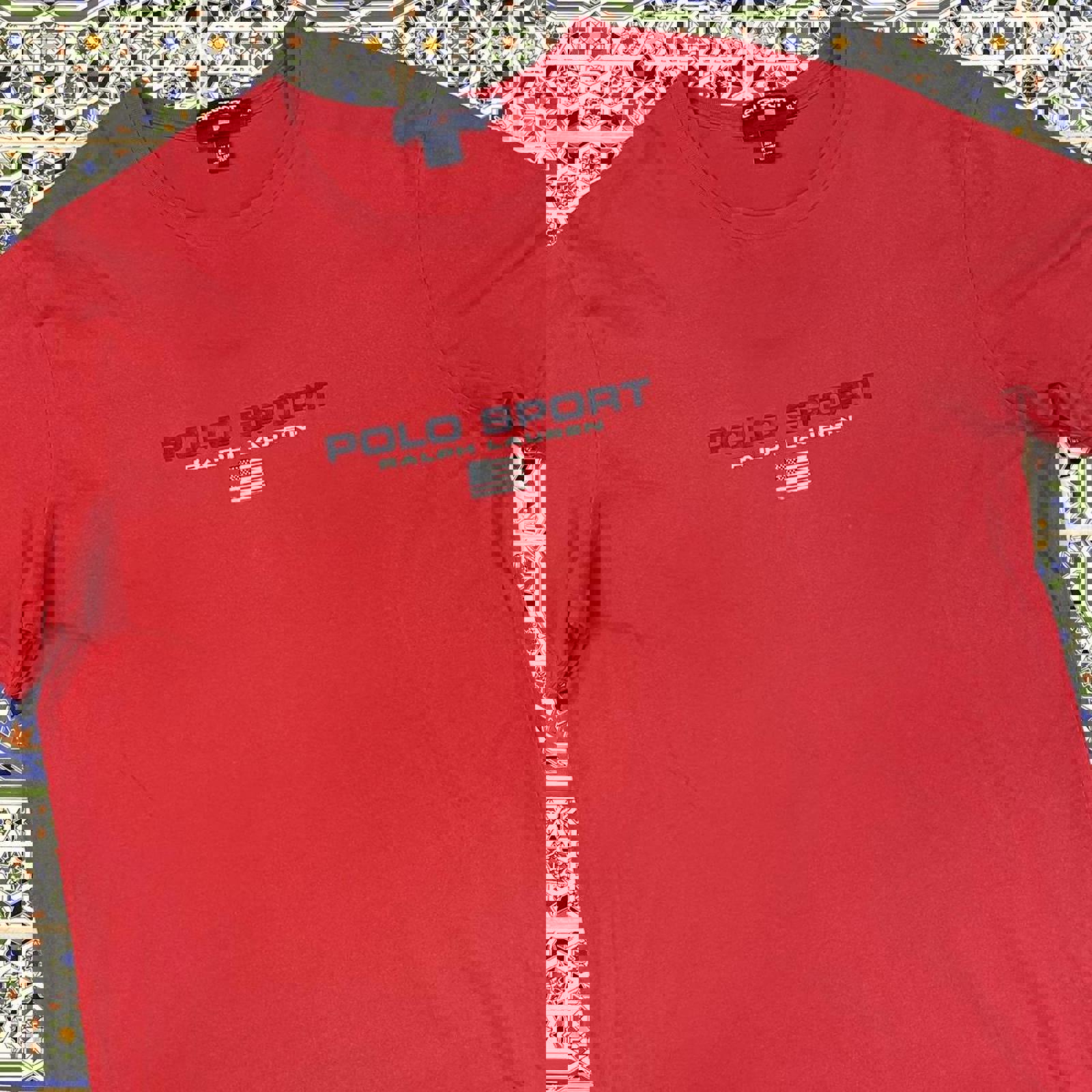 red Ralph Lauren tee with a screen printed polo sport graphic on the front