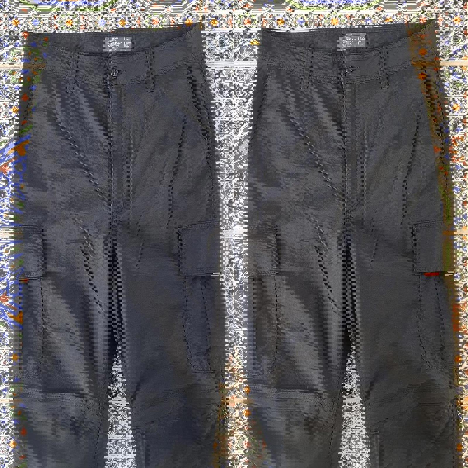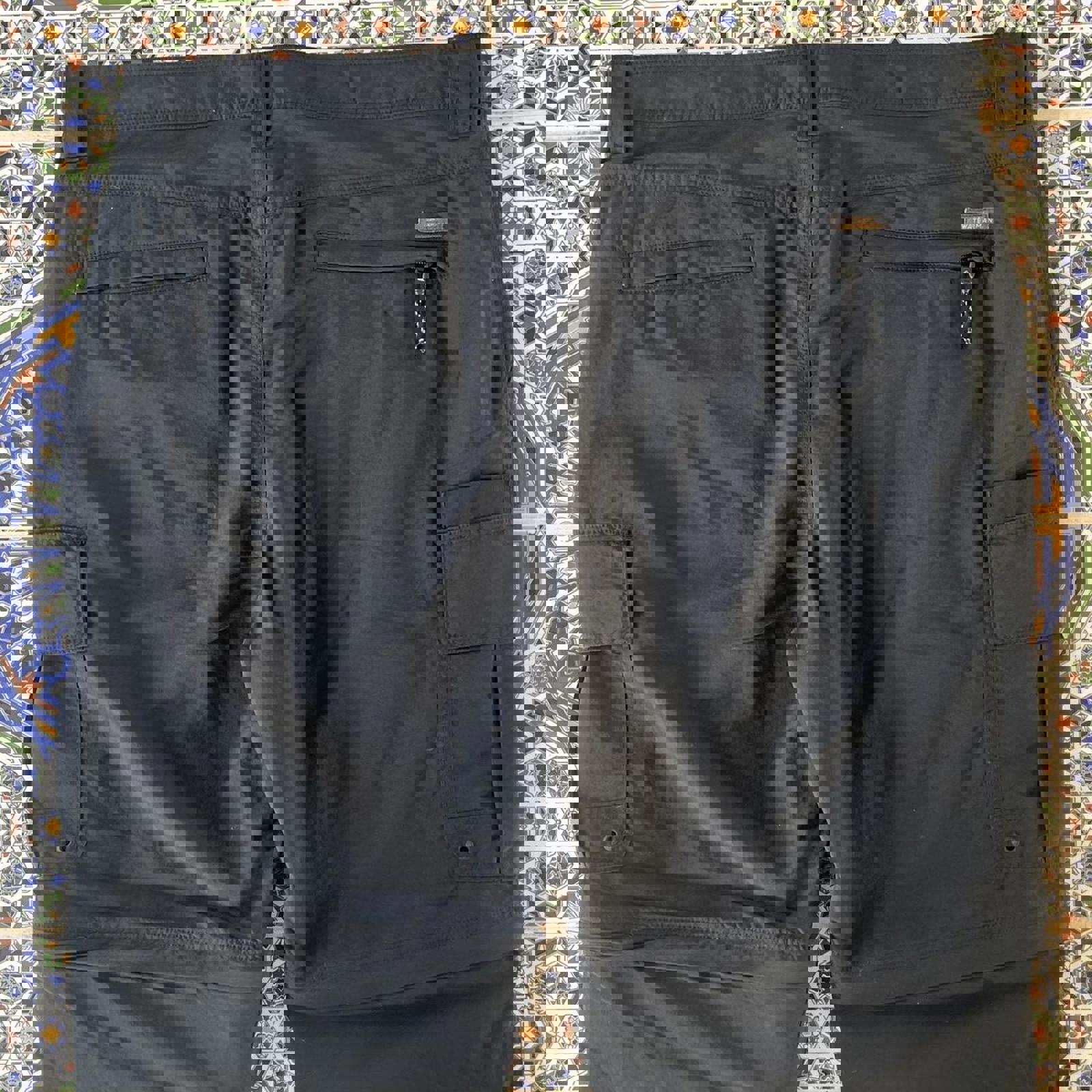 black quiksilver adventure wear hiking pants with cargo pockets and a quiksilver tab on the bum
