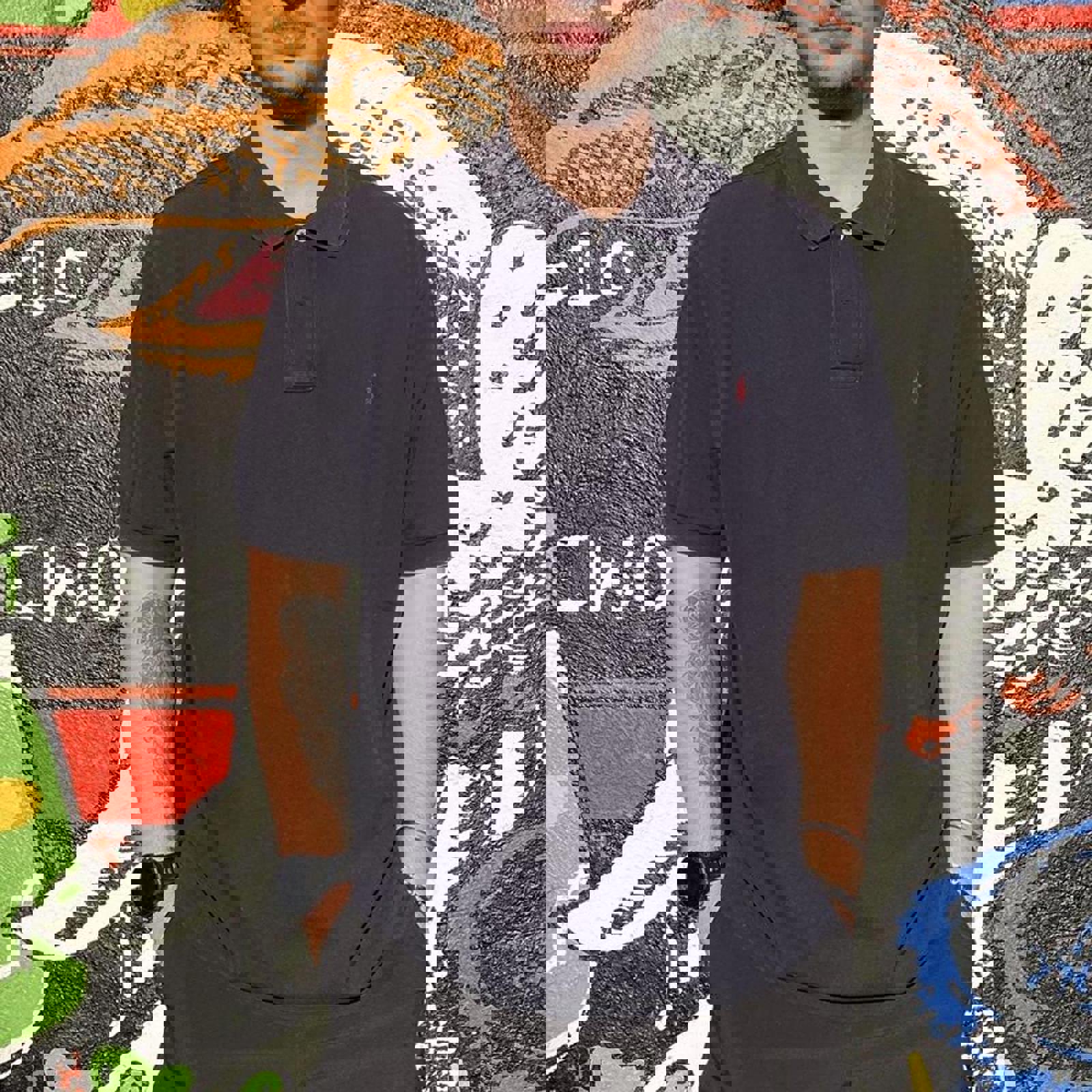 navy Ralph Lauren polo shirt with red embroidered horse on the chest