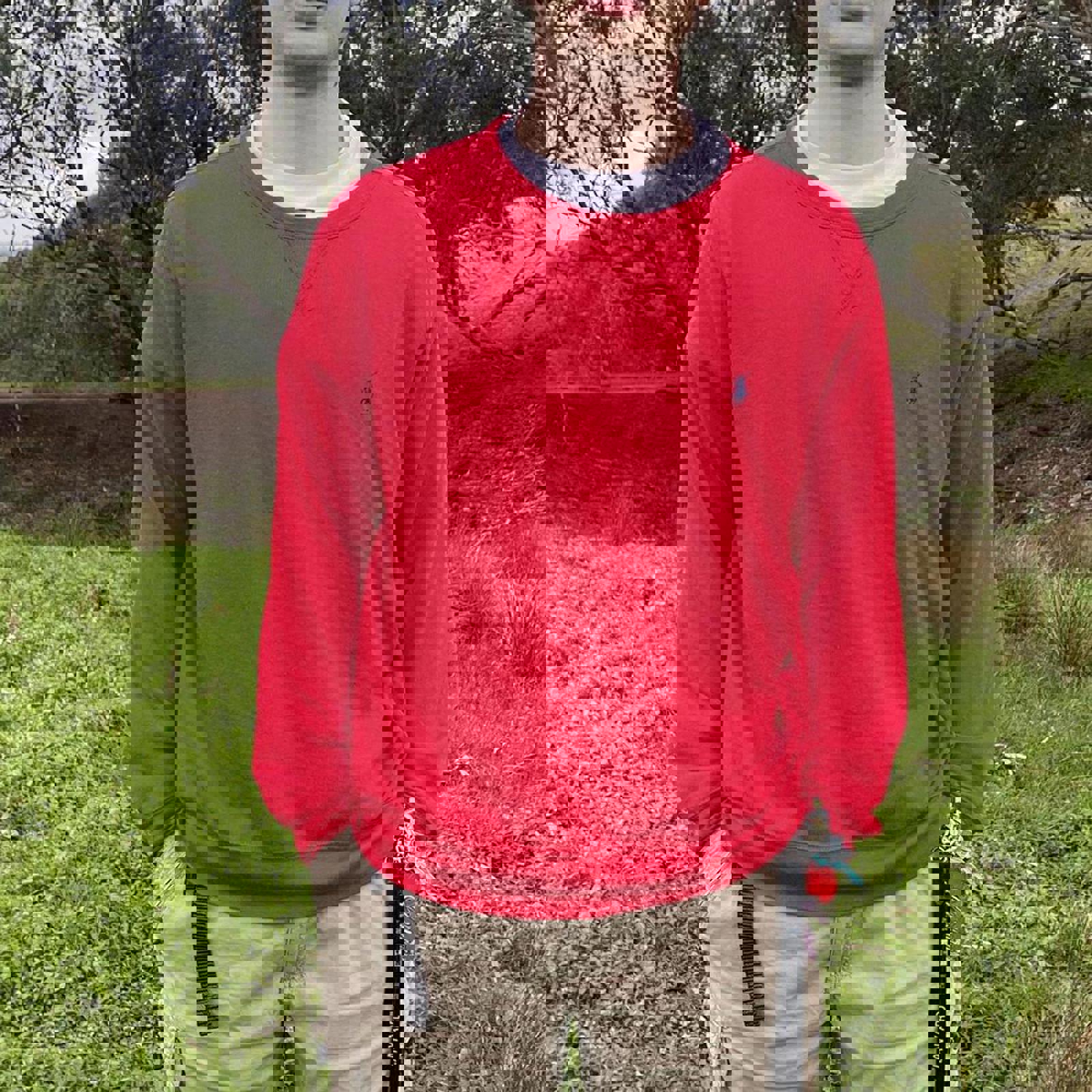red ralph lauren sweatshirt with navy embroidered horse on the chest