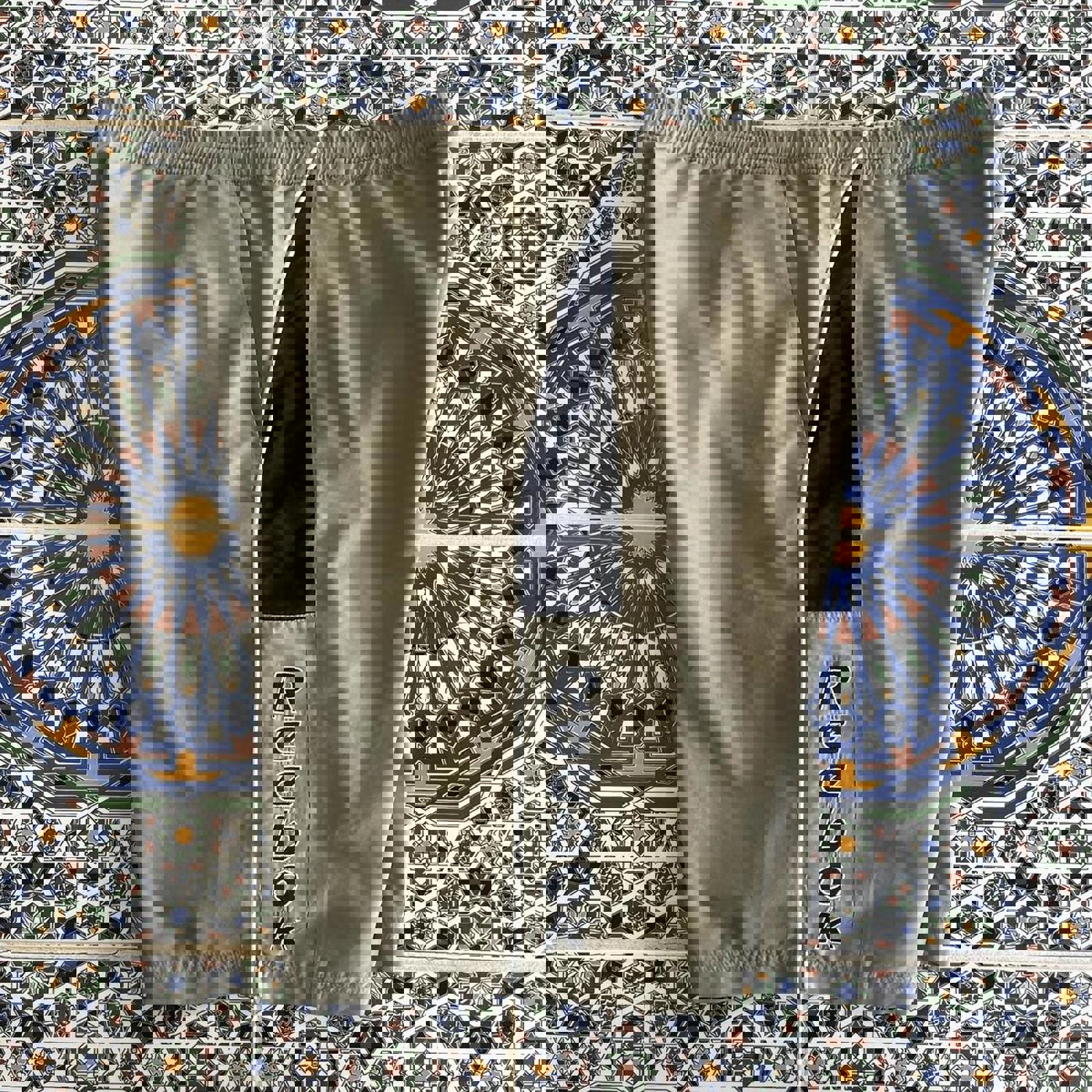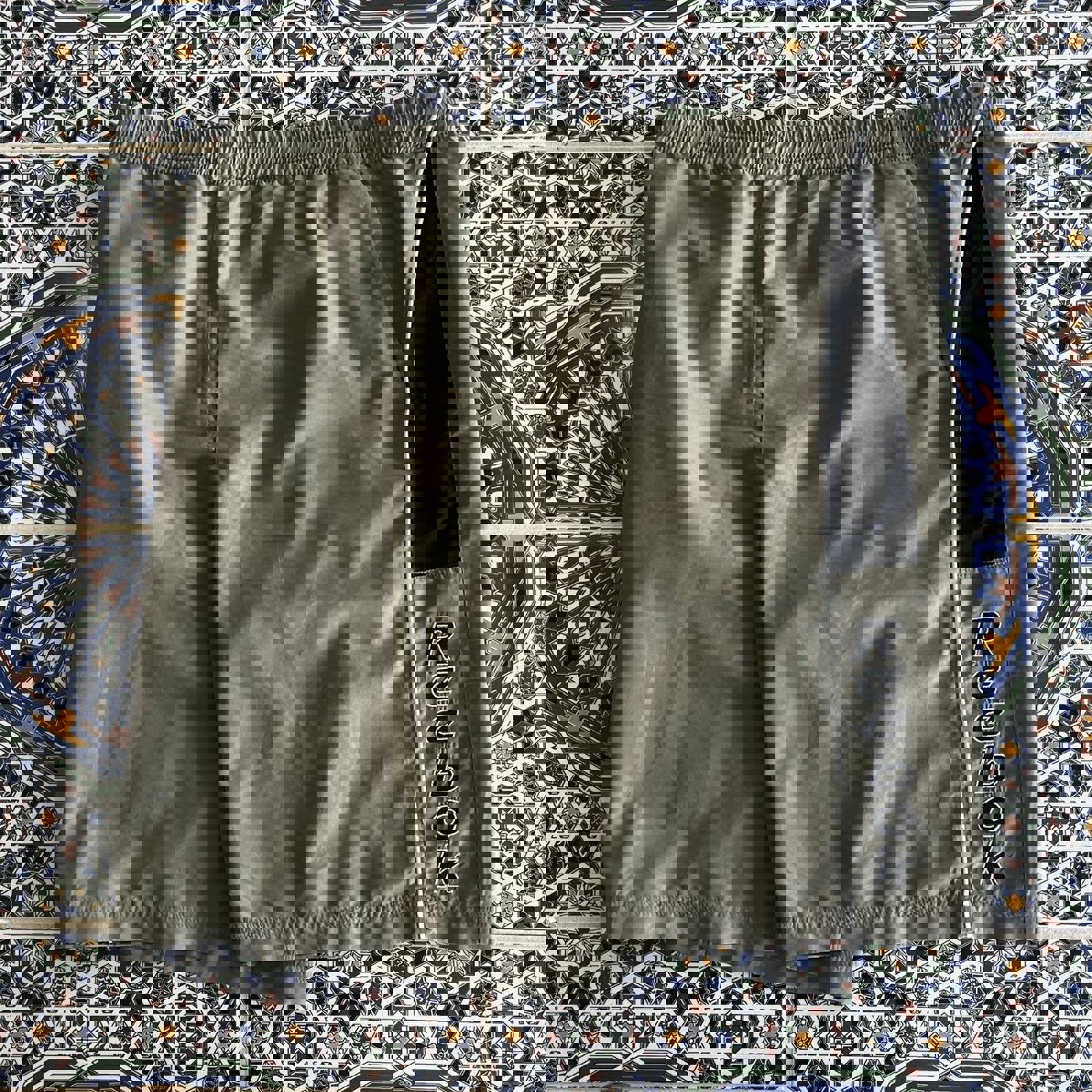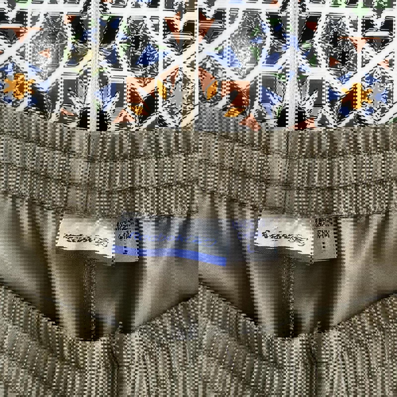 Olive green Reebok shorts with white piping and black next to the pockets. Has embroidered Reebok spell out down the leg