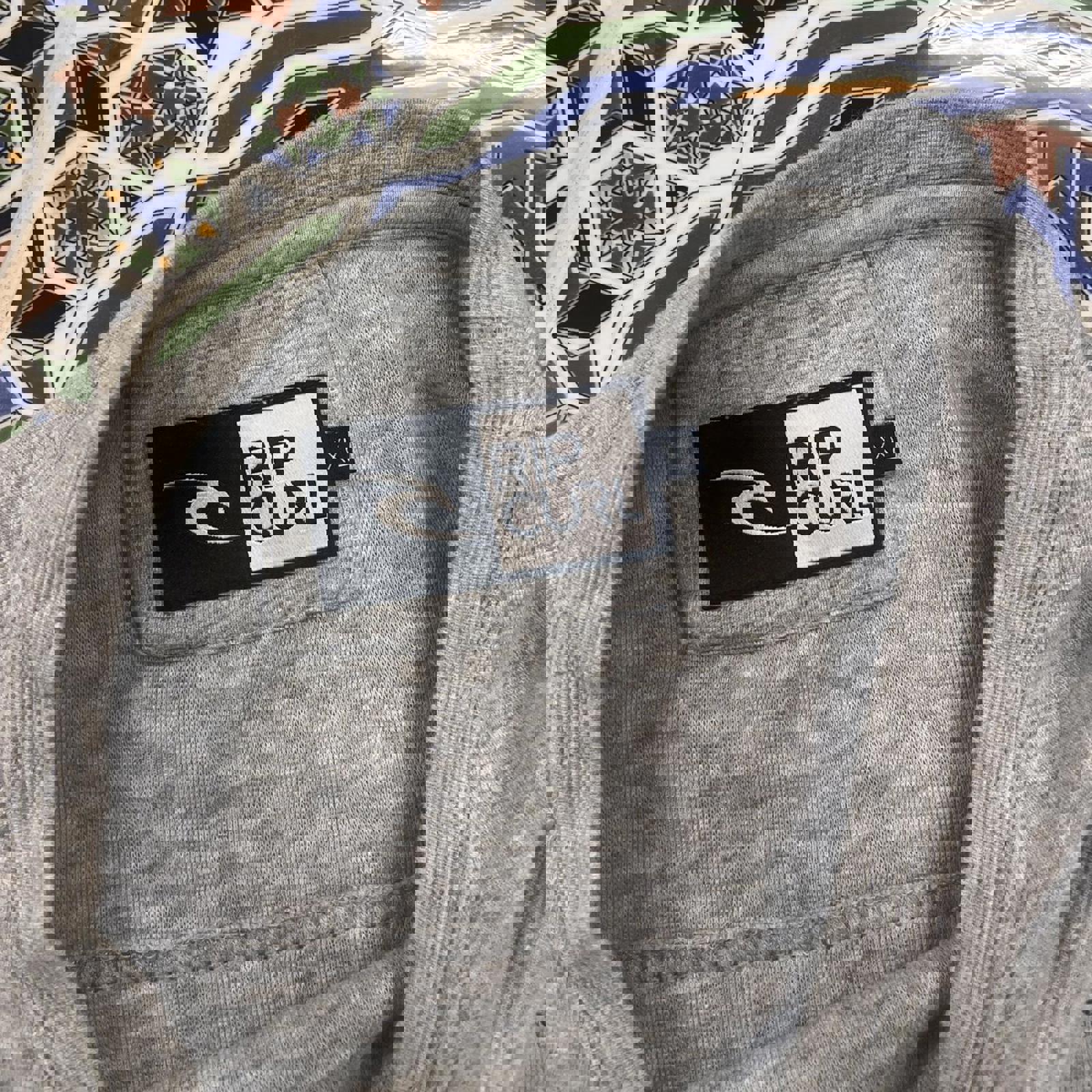 Grey textured ripcurl sweatshirt jumper with a grey embroidered spell out in the chest and grey embroidered logo on the sleeve