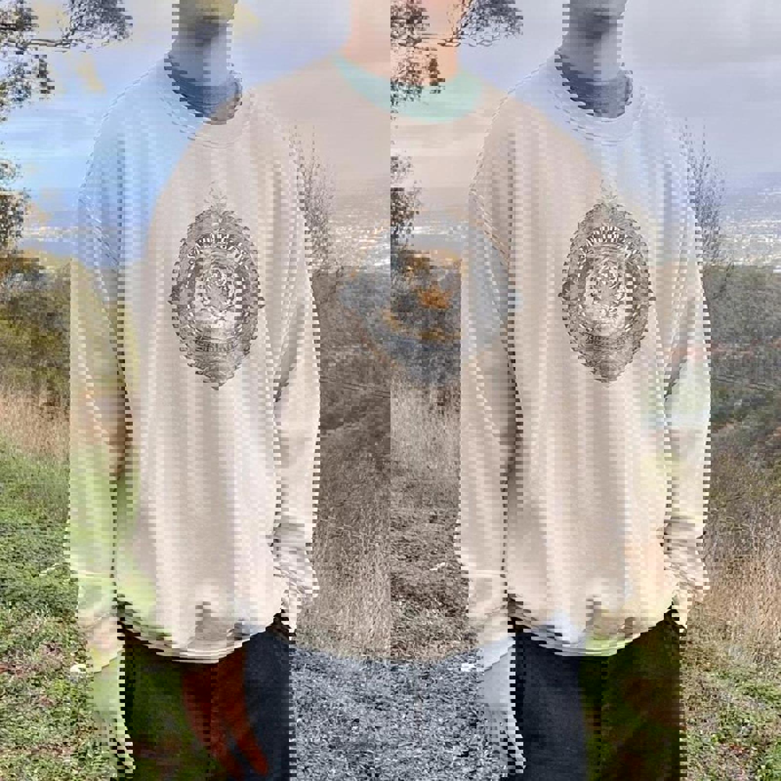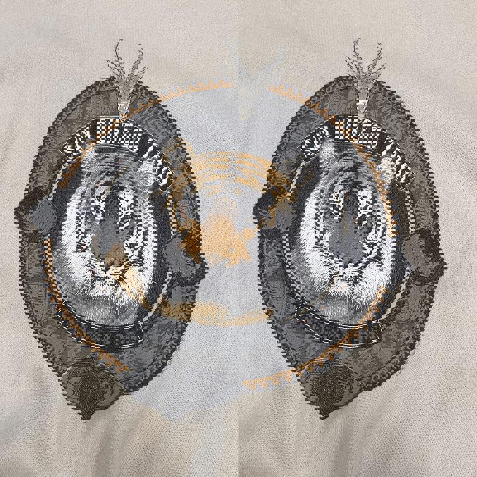 cream gildan sweatshirt with a tiger San Diego zoo graphic on the front