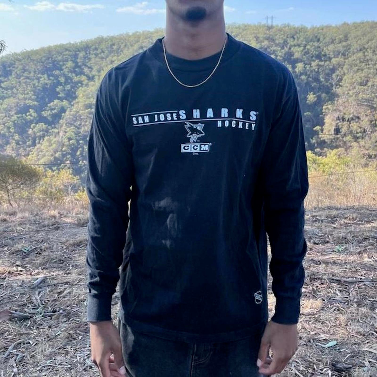 feel free to send us any questions, free shipping on orders $100+, Mon - fri 12pm shipping, International shipping available, Thankyou for shopping with Squid Ink Vintage #tee #longsleevetee #tshirt #NHL #sanjosesharks