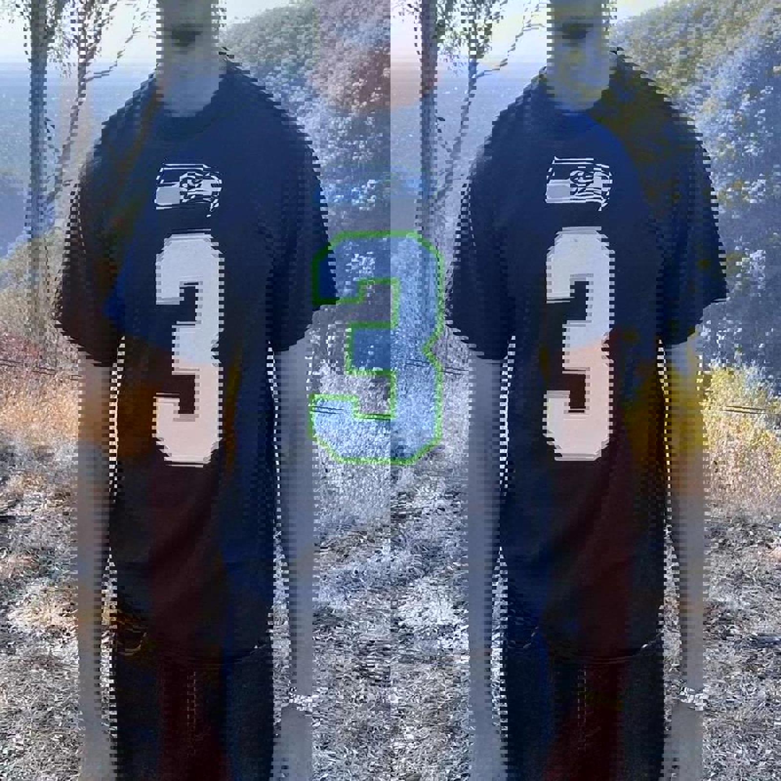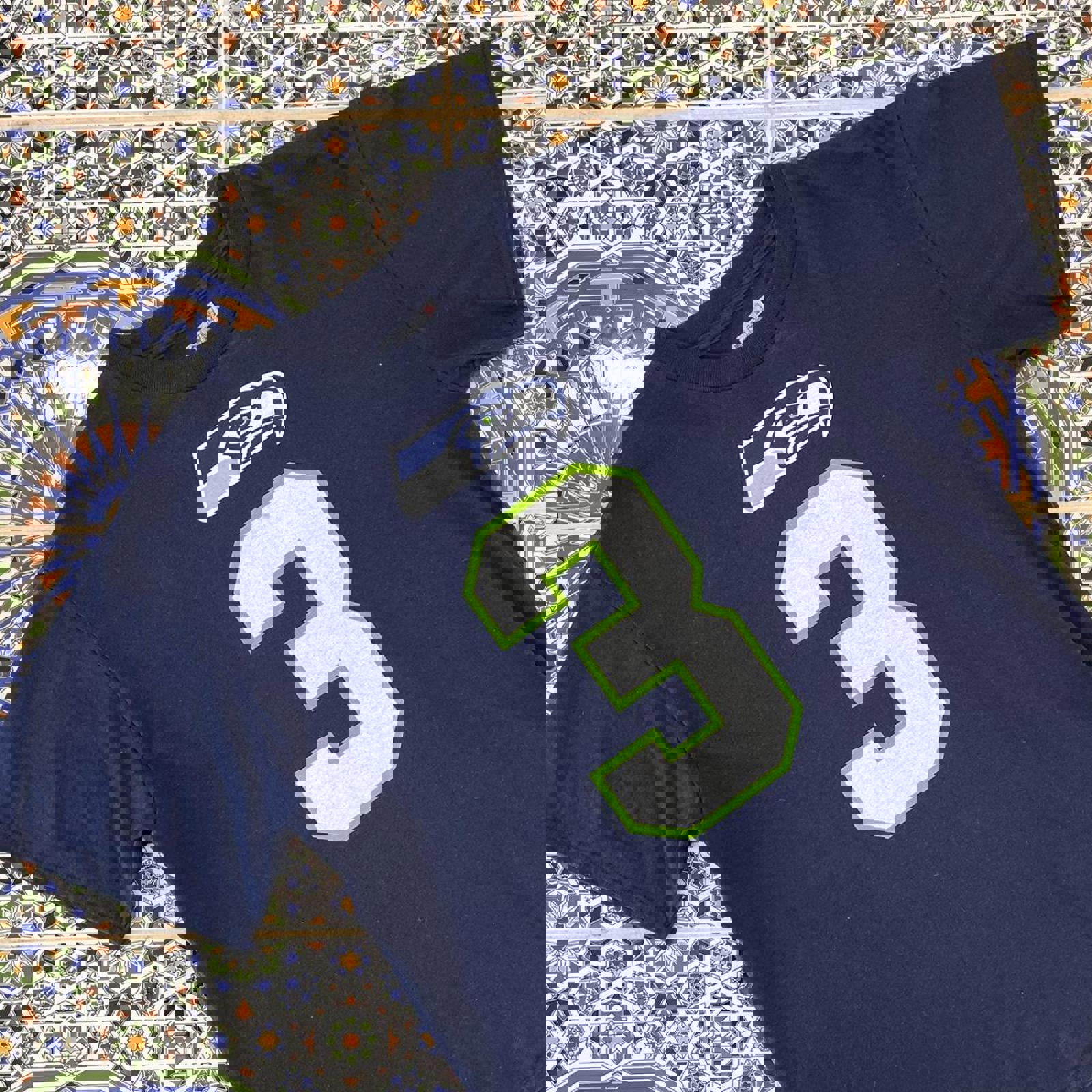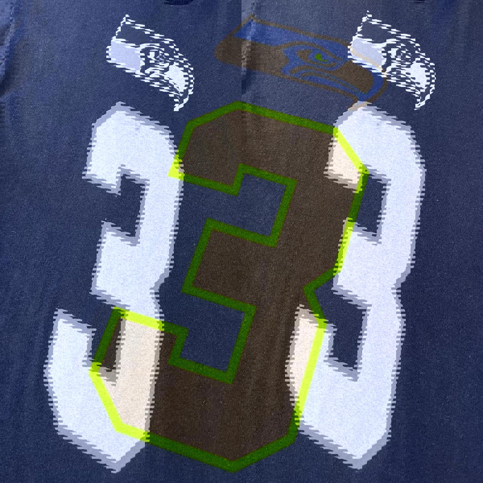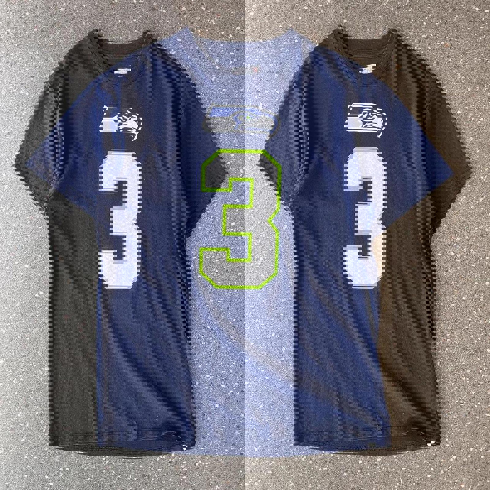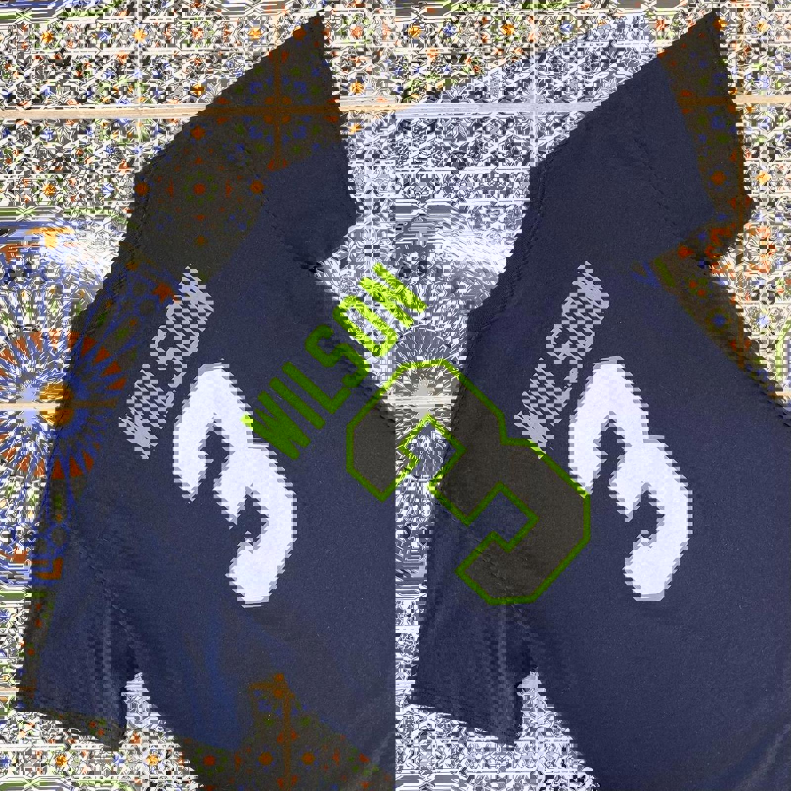navy nfl tshirt with a centred sea hawks logo and 3 on the front and wilson 3 on the back