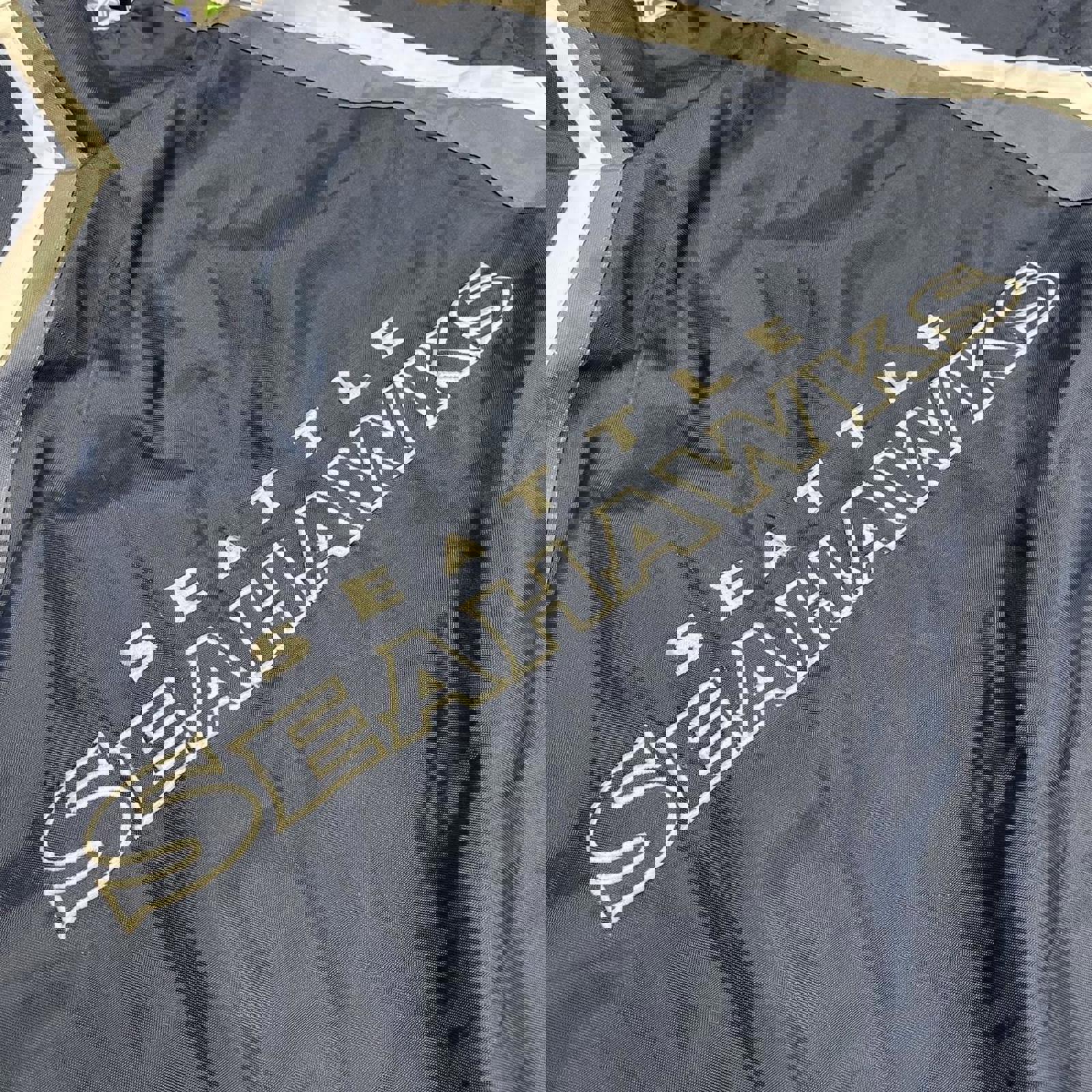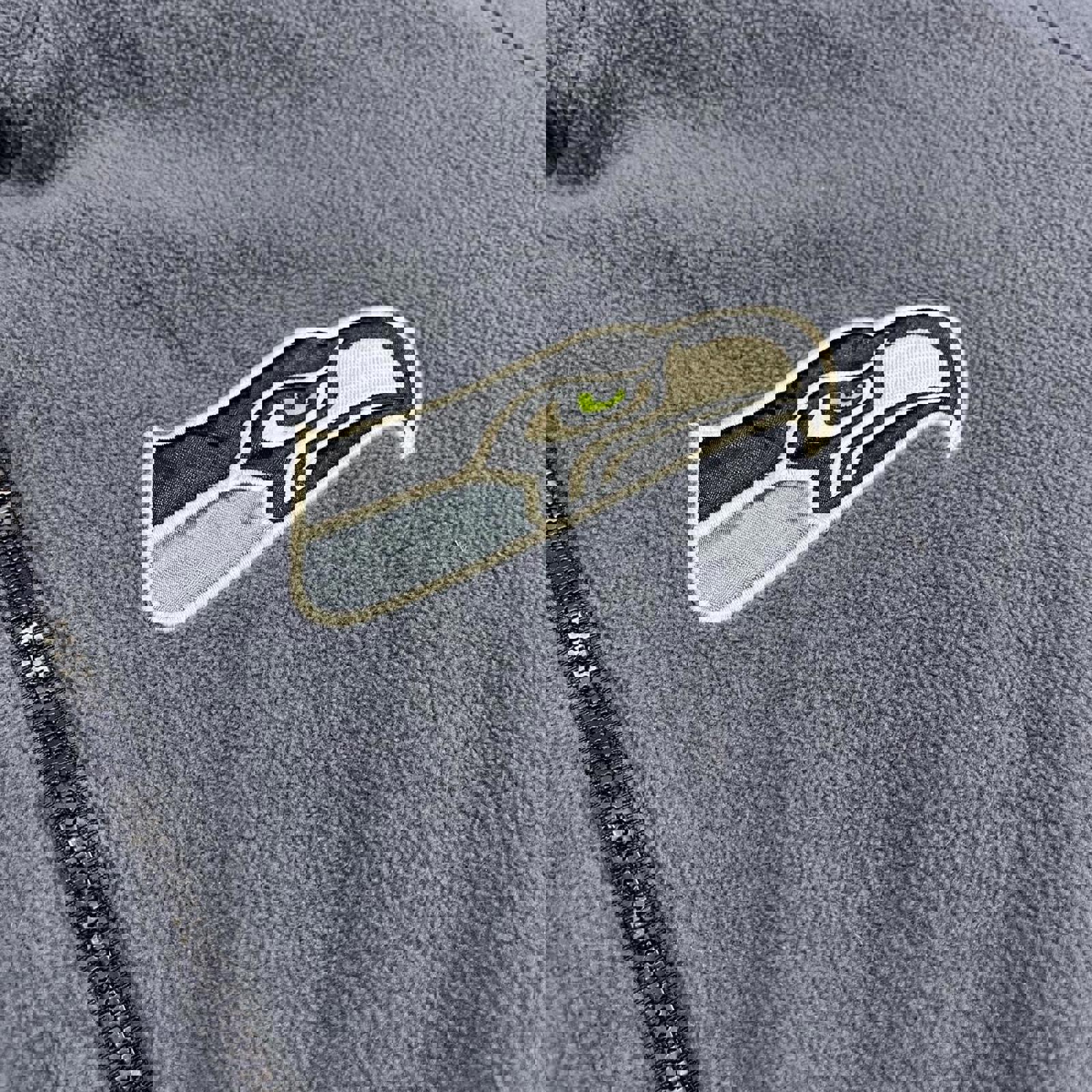 Two tone navy and white Seattle Seahawks reversible fleece jacket with a large hawk logo on the chest on either side
