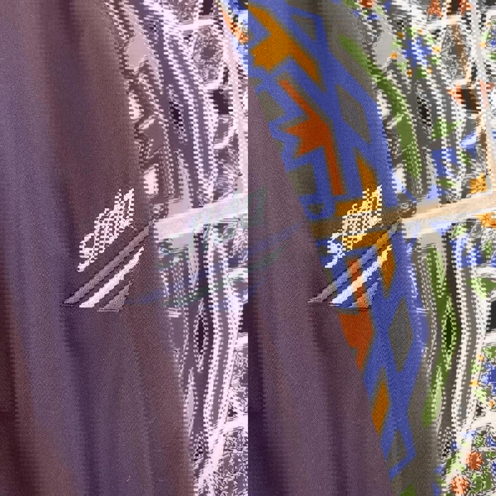 vintage purple sfida trackies with a white and purple embroidered logo on the hip