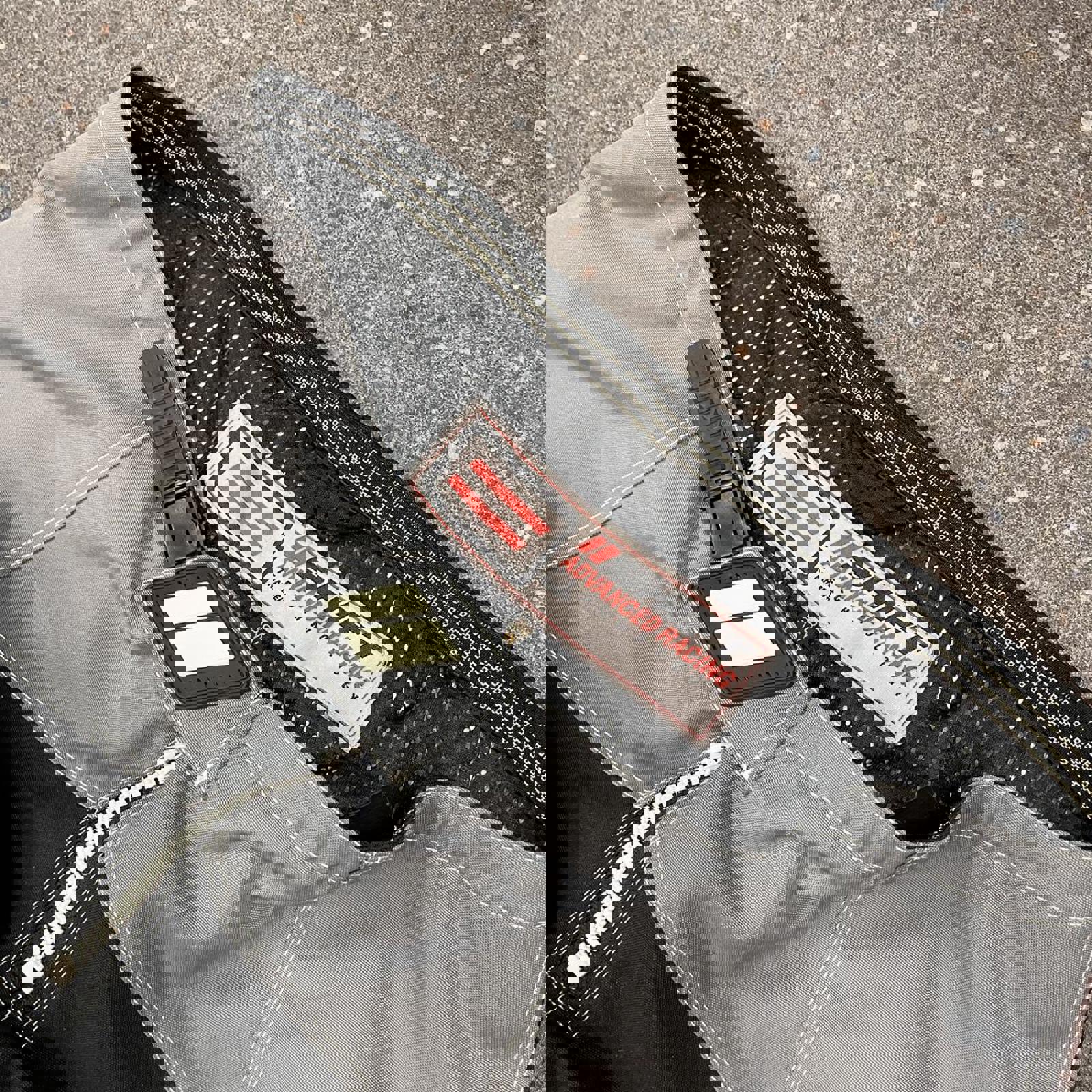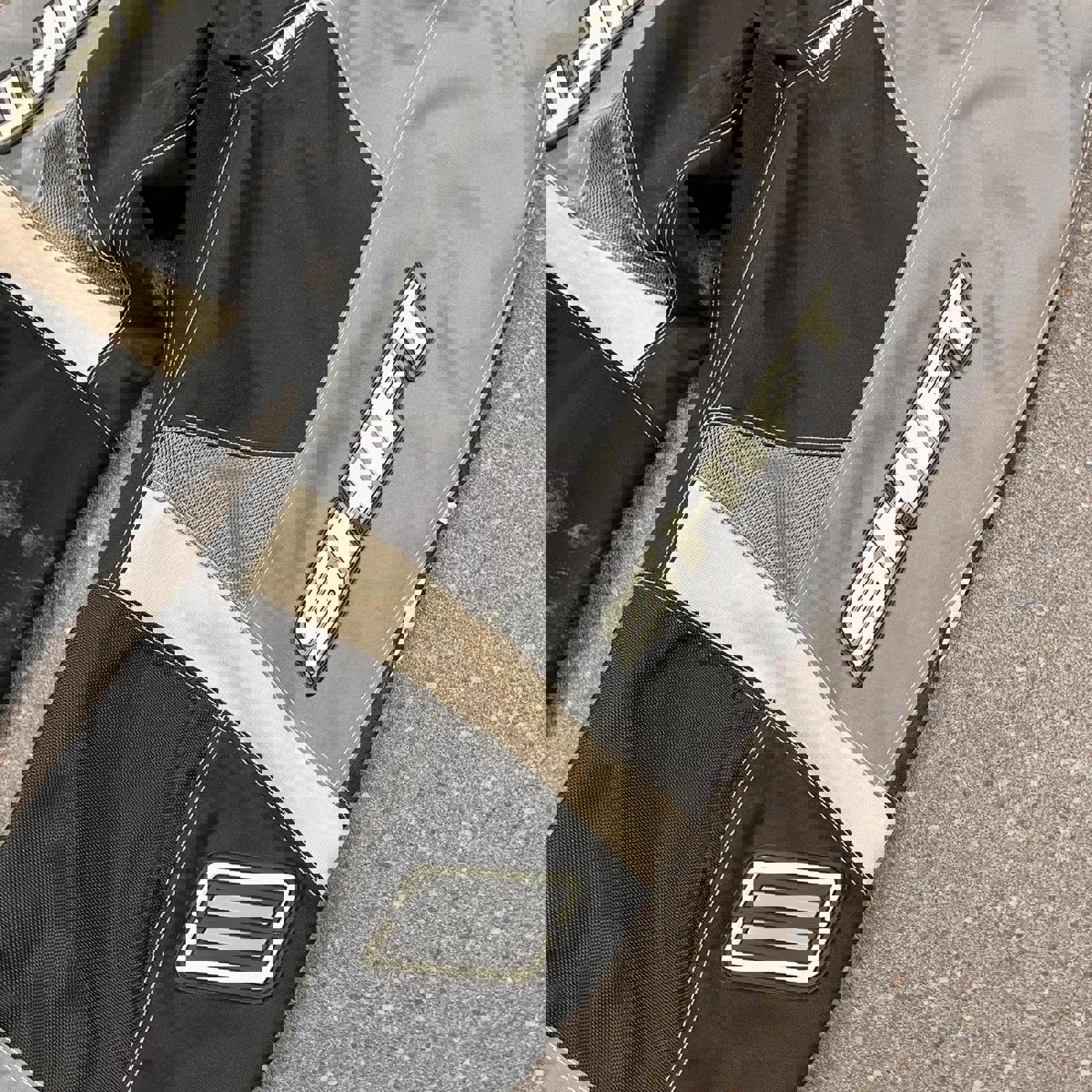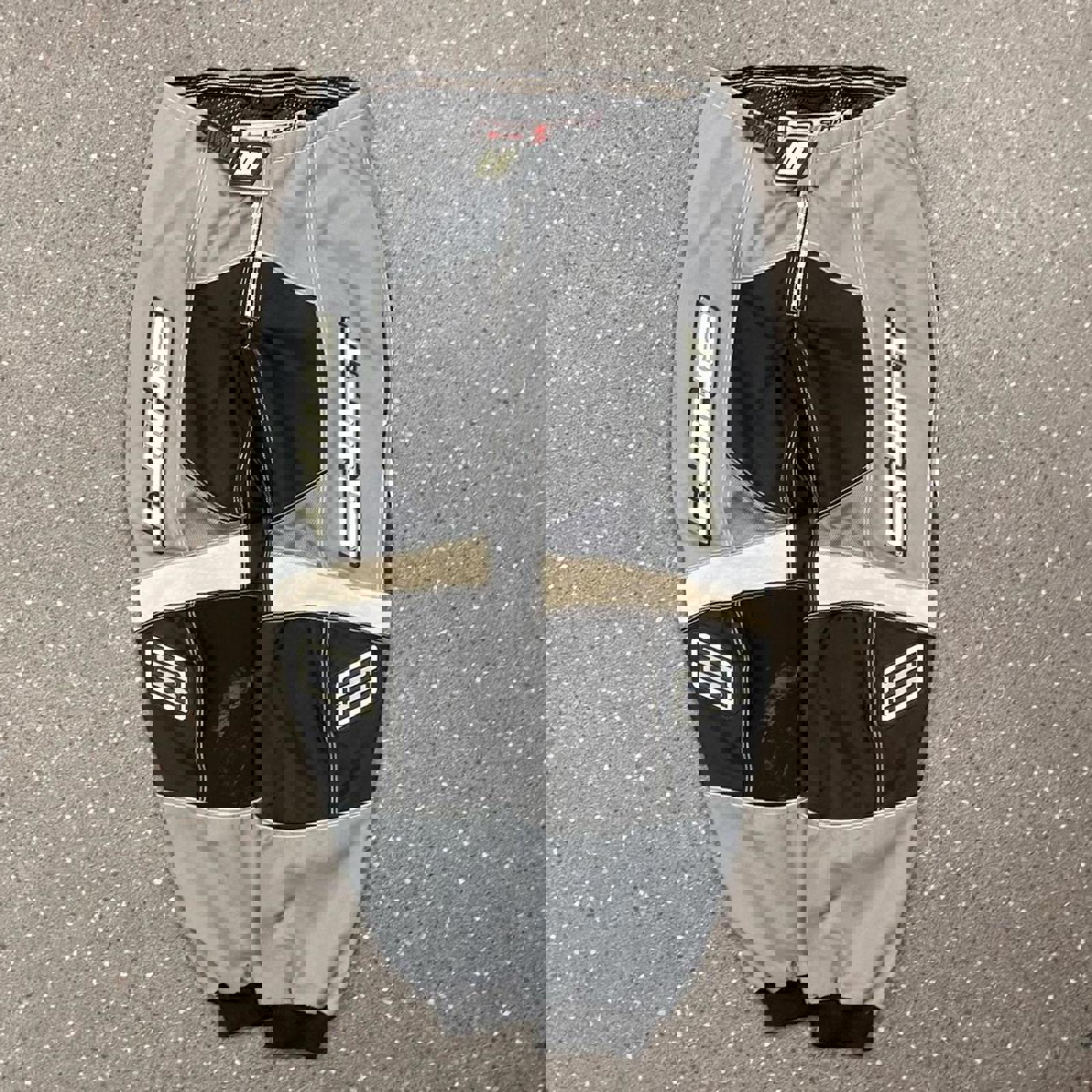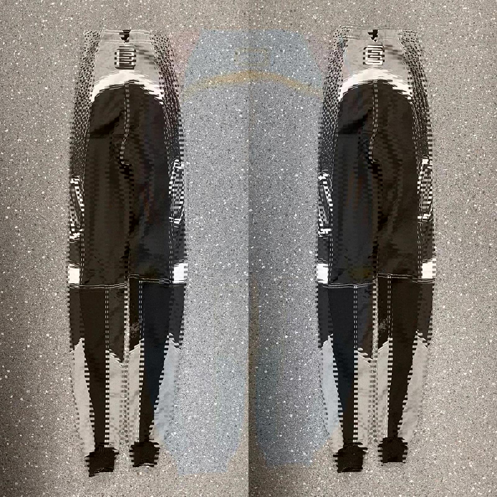 Black, grey and white shift moto-x pants with rubber patch branding