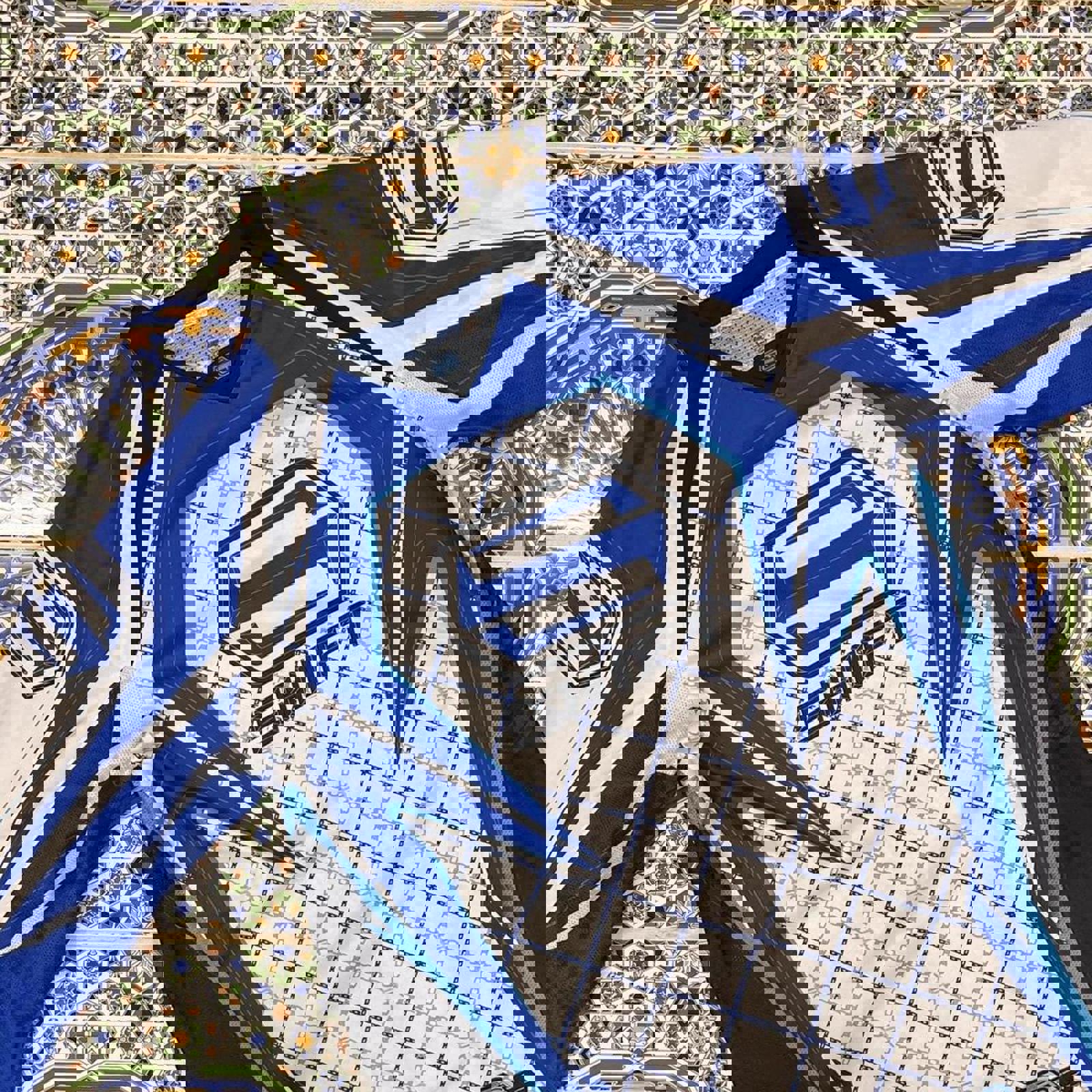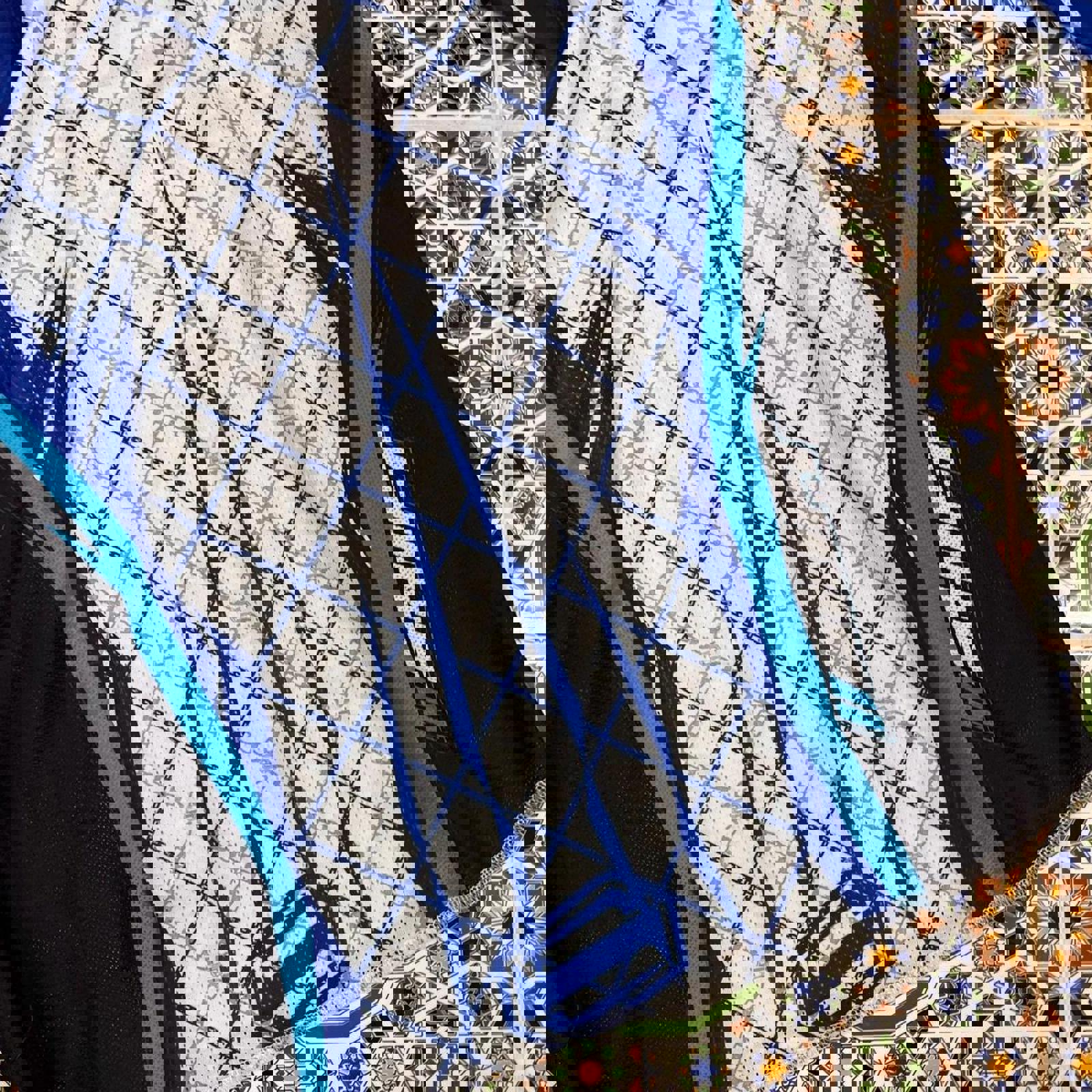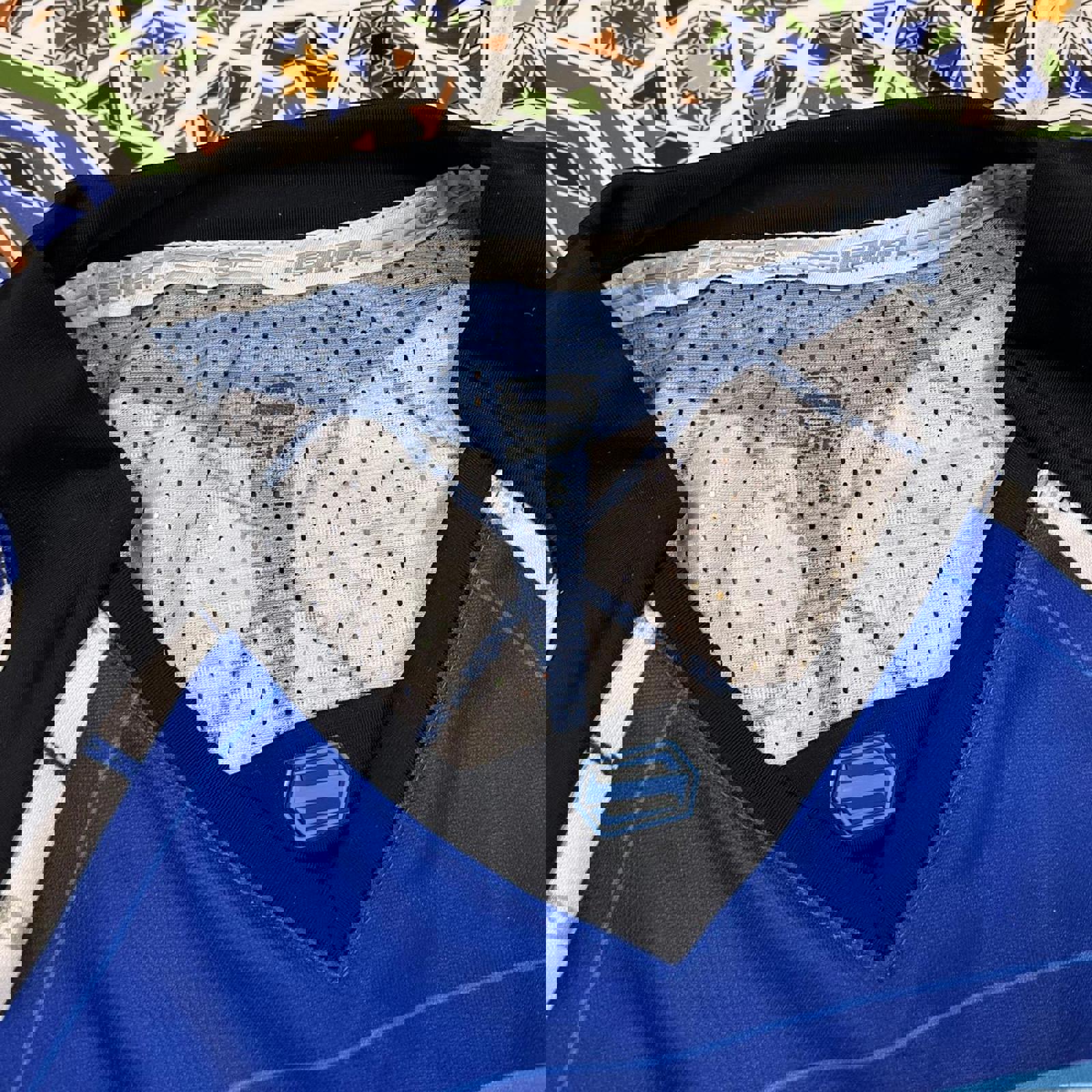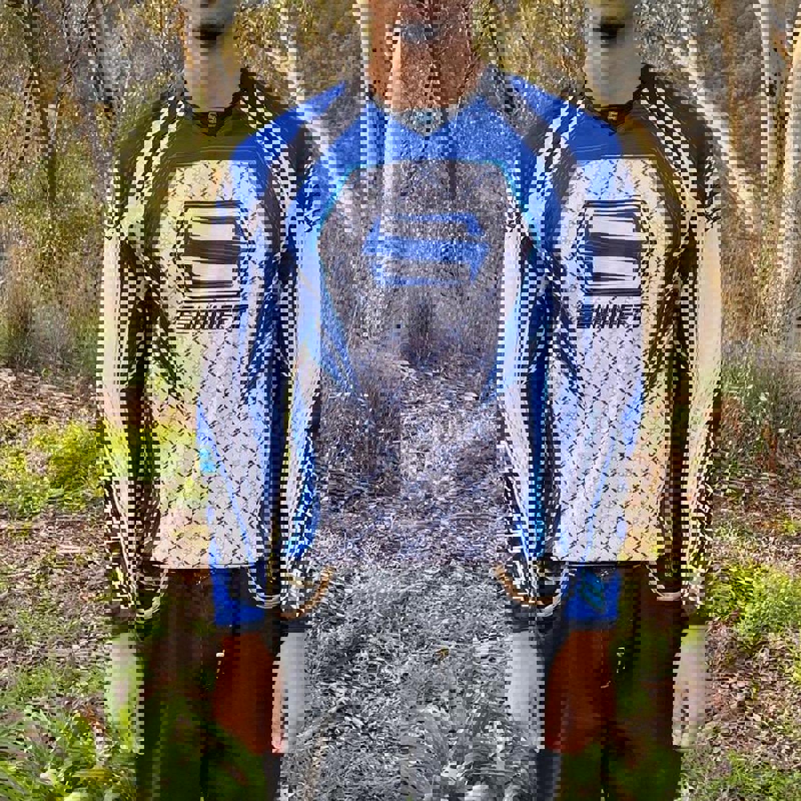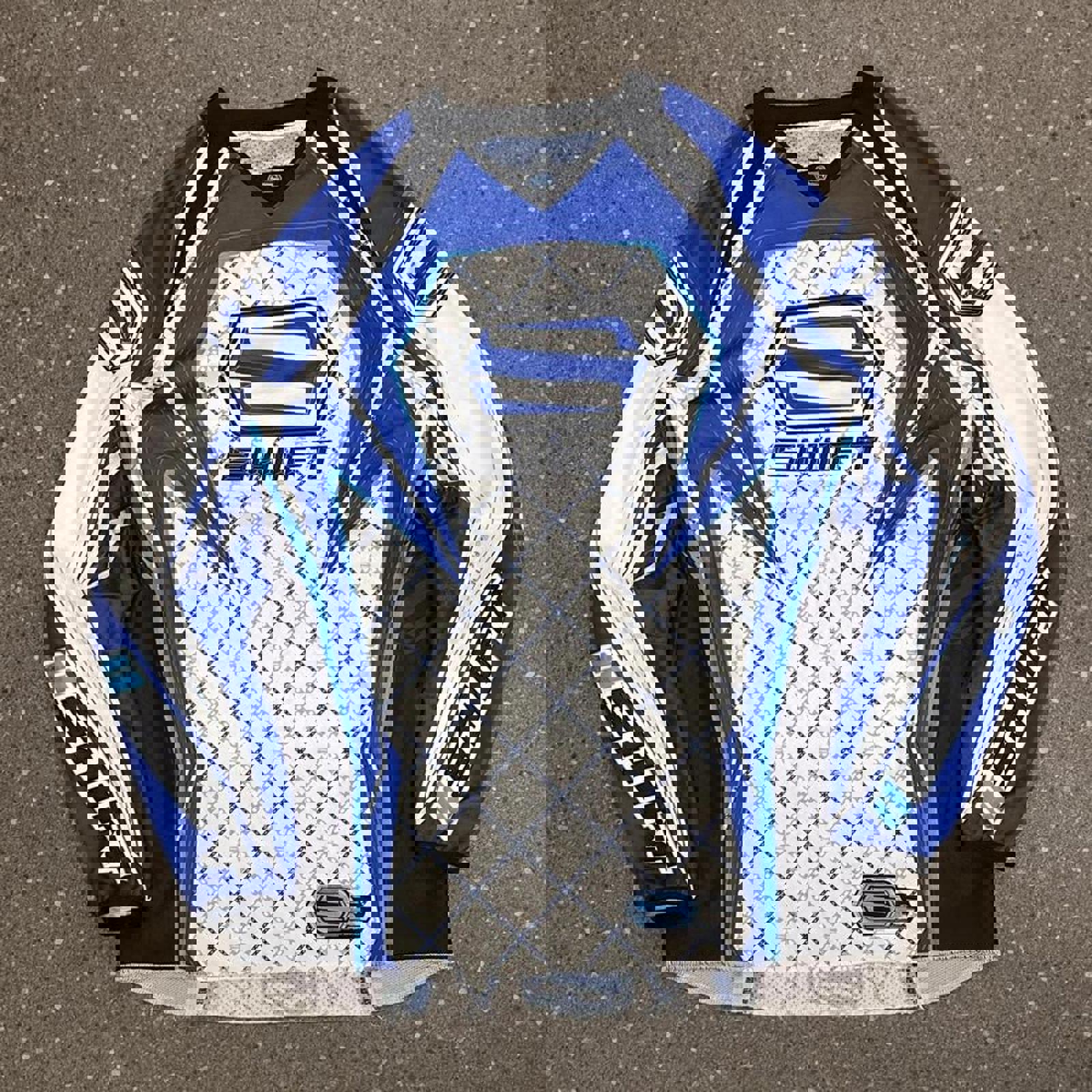 White, blue, grey and black all over print shift bike jersey with built in elbow protection