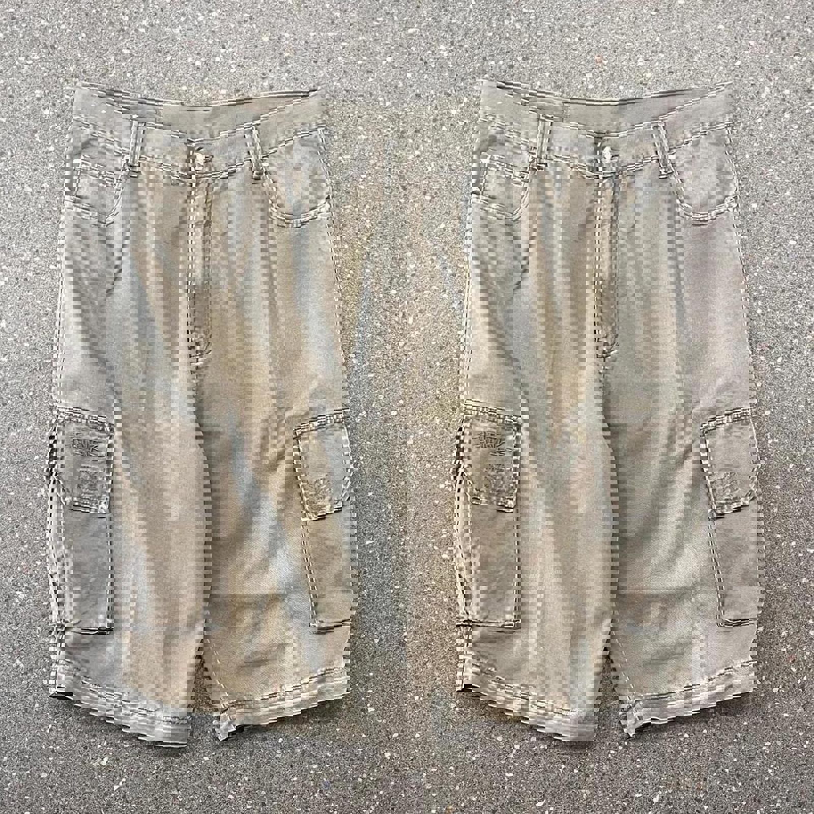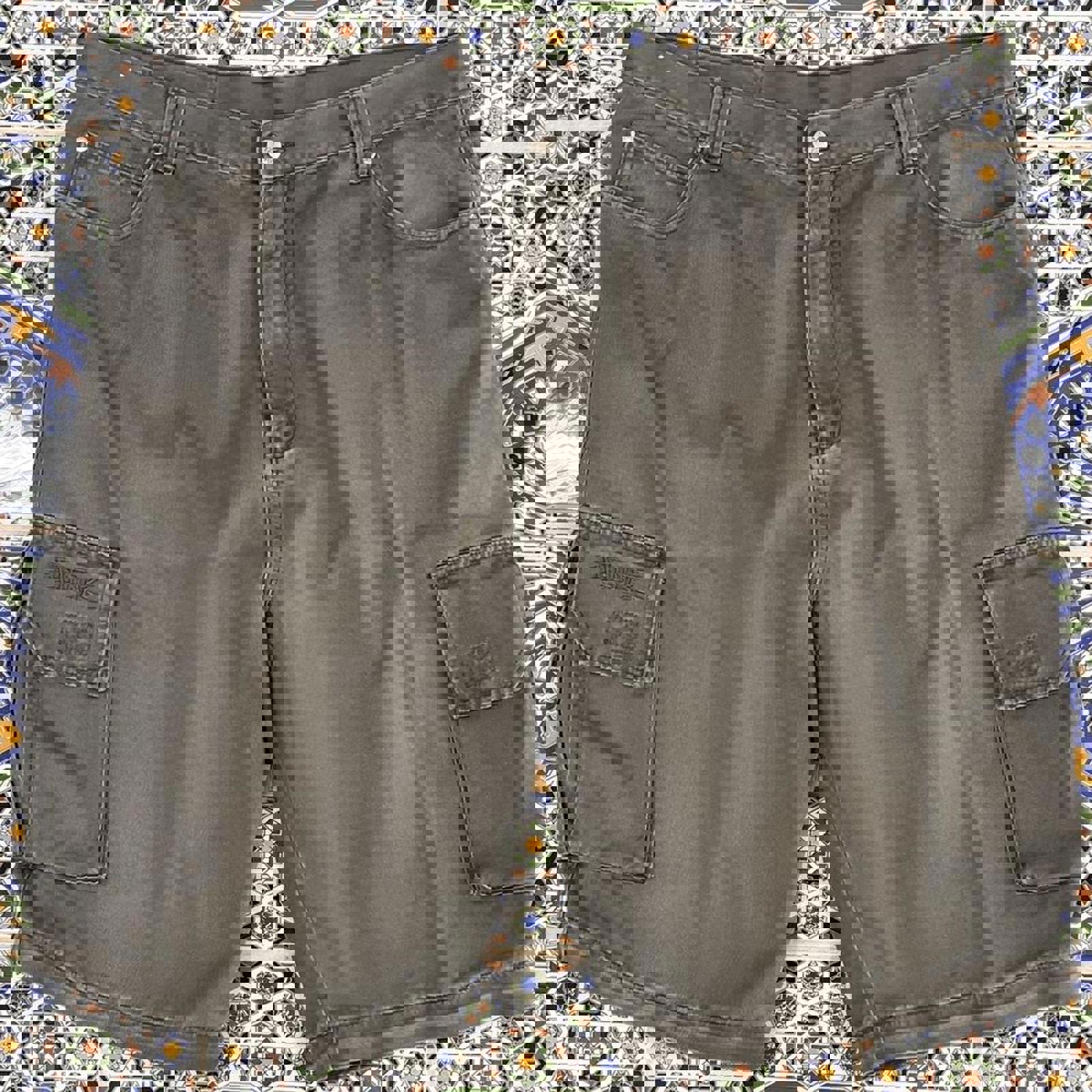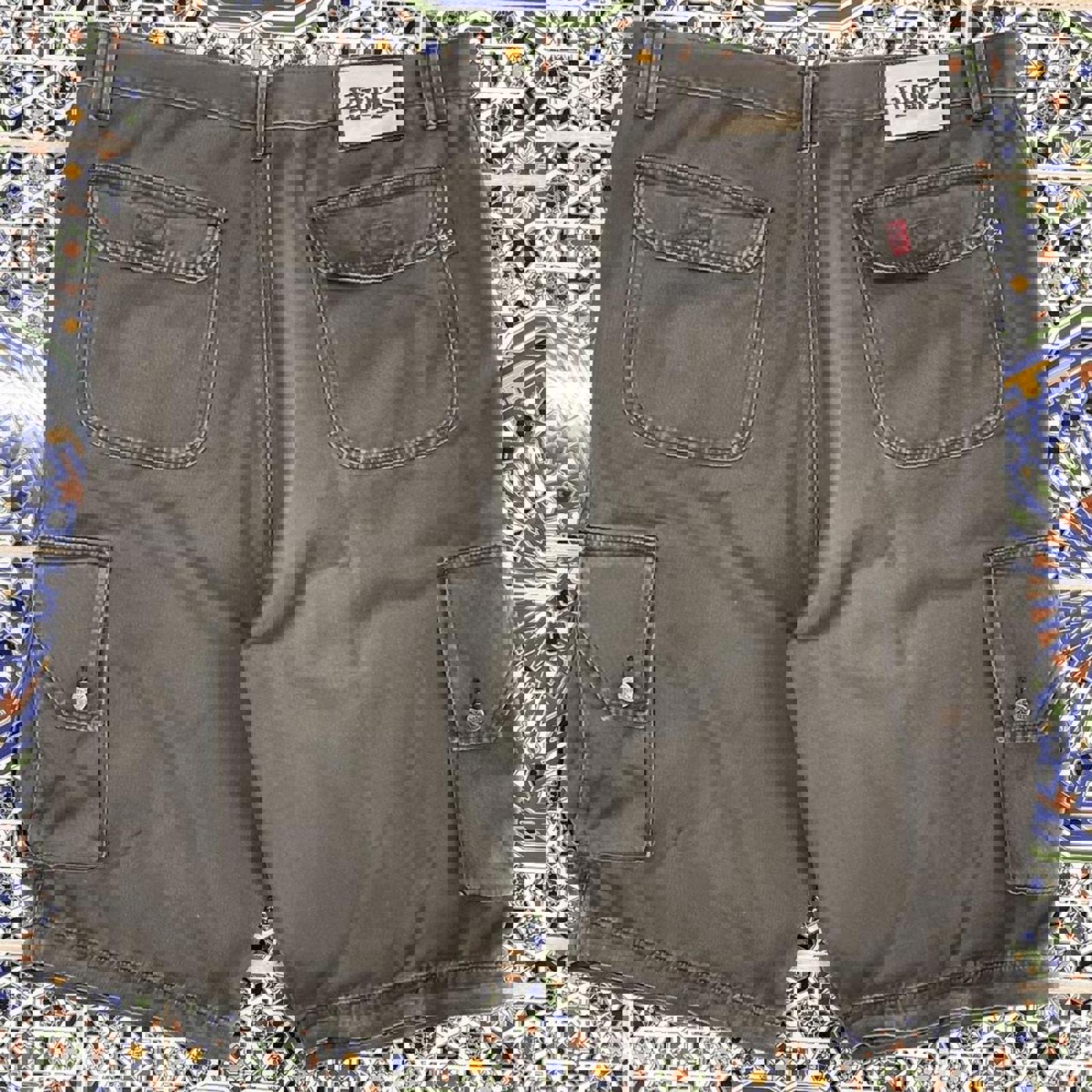 Dark green think cargo shorts with embroidered logos on the bum and cargo pocket