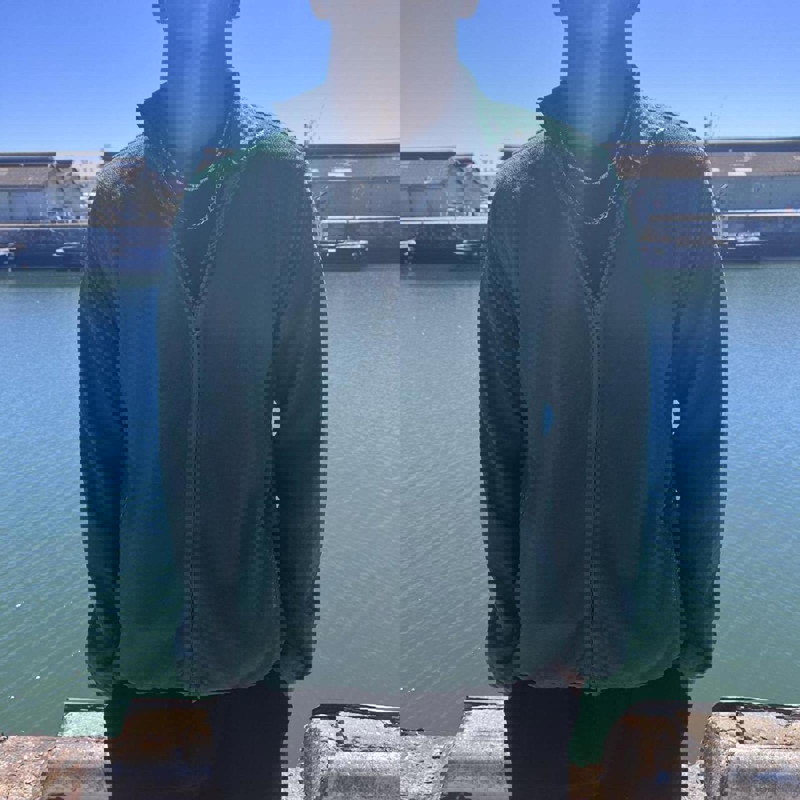 Plain green Tommy Hilfiger fleece sweater jacket with pockets on the side