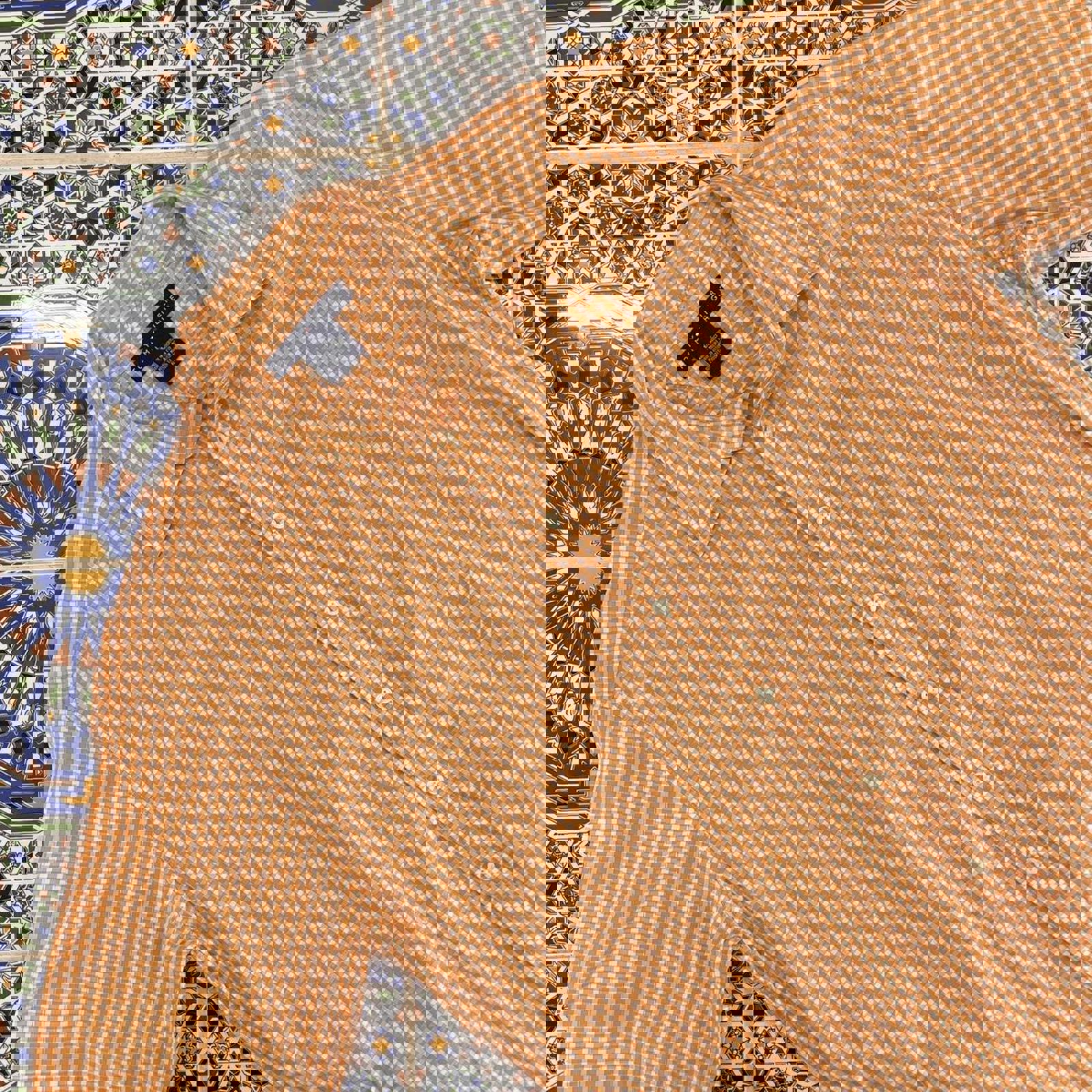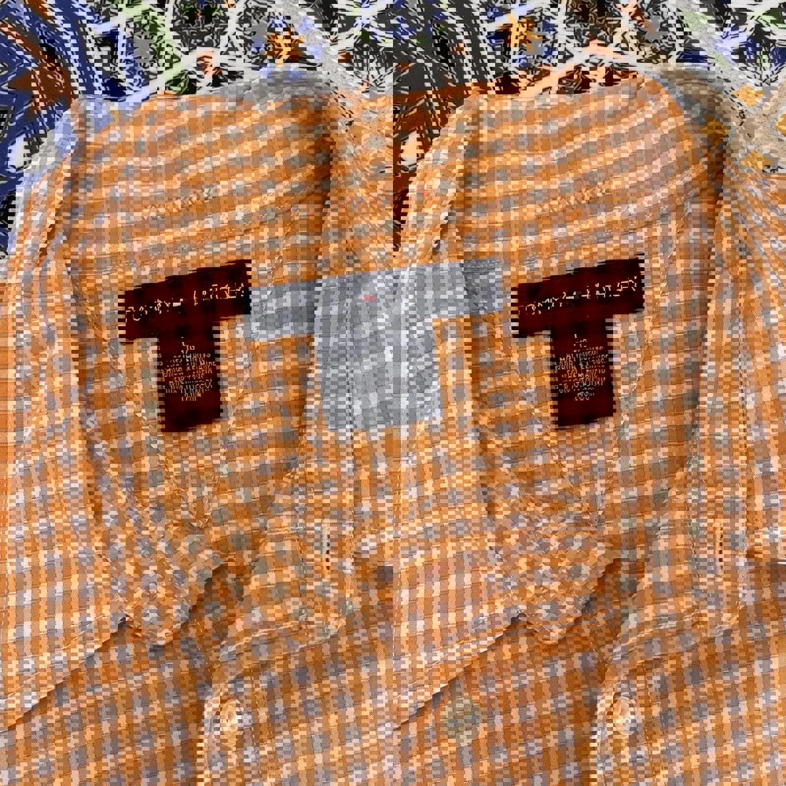 orange and white checkered tommy hilfiger short sleeved button up shirt