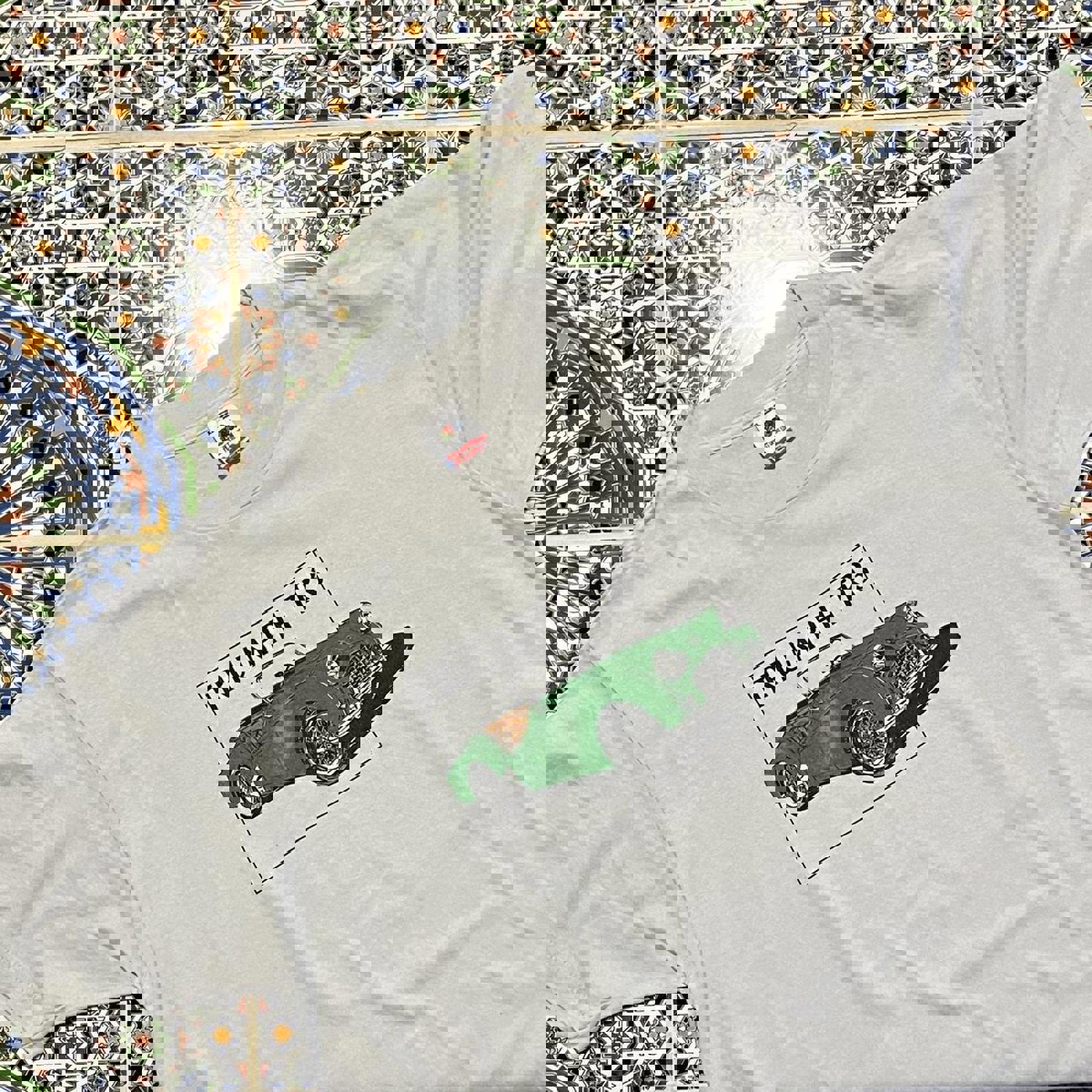 Vintage Single stitch light grey tee with screen printed green Triumph TR3 graphic on front