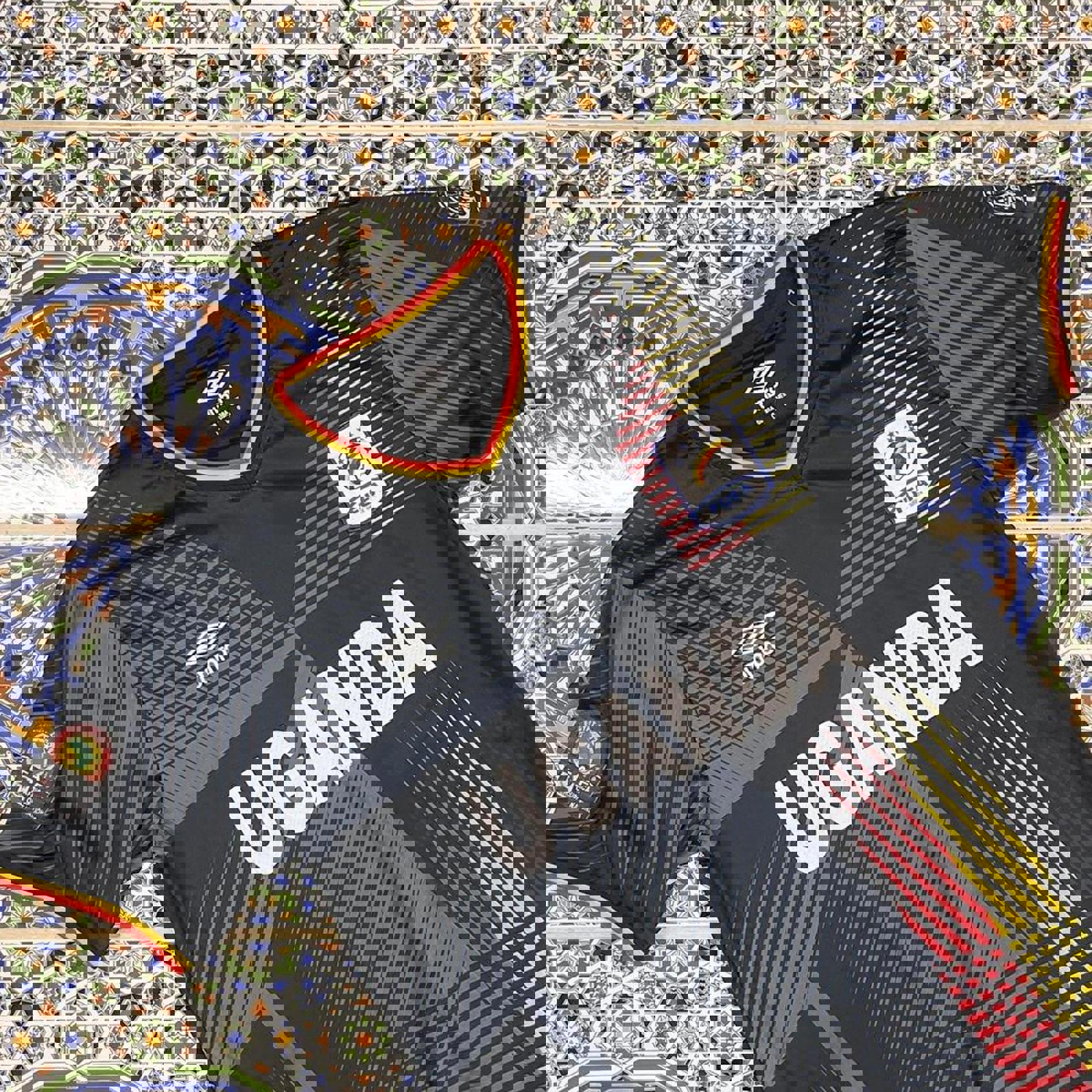 black, grey, red and yellow uganda home kit for the african cup of nations in egypt 2024
