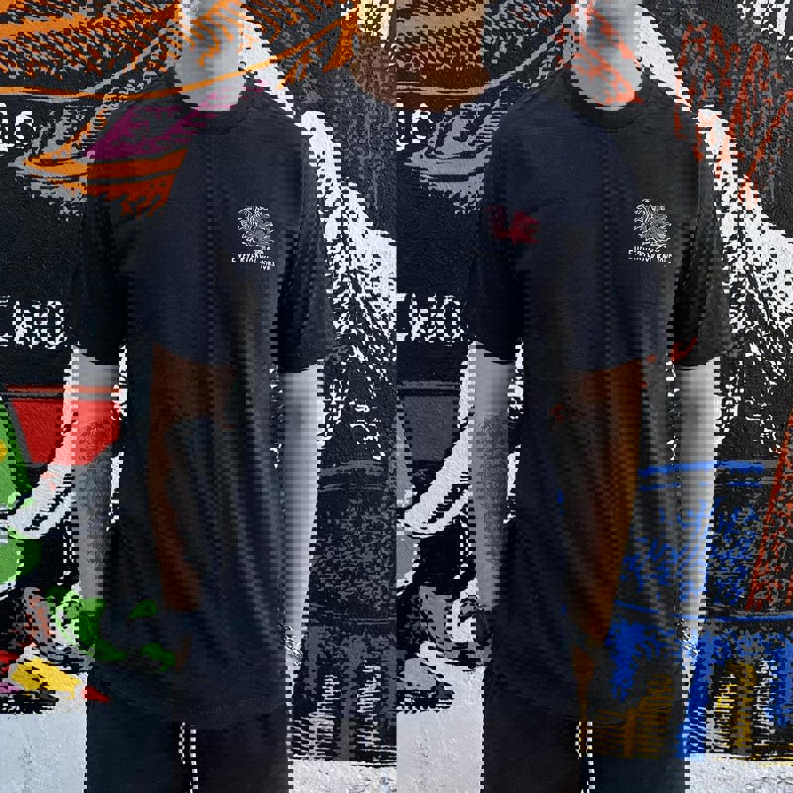Super cool black AAA tee with small “everybody knows” graphic on the chest and large “the sign of intelligent life” crop field graphic on the back