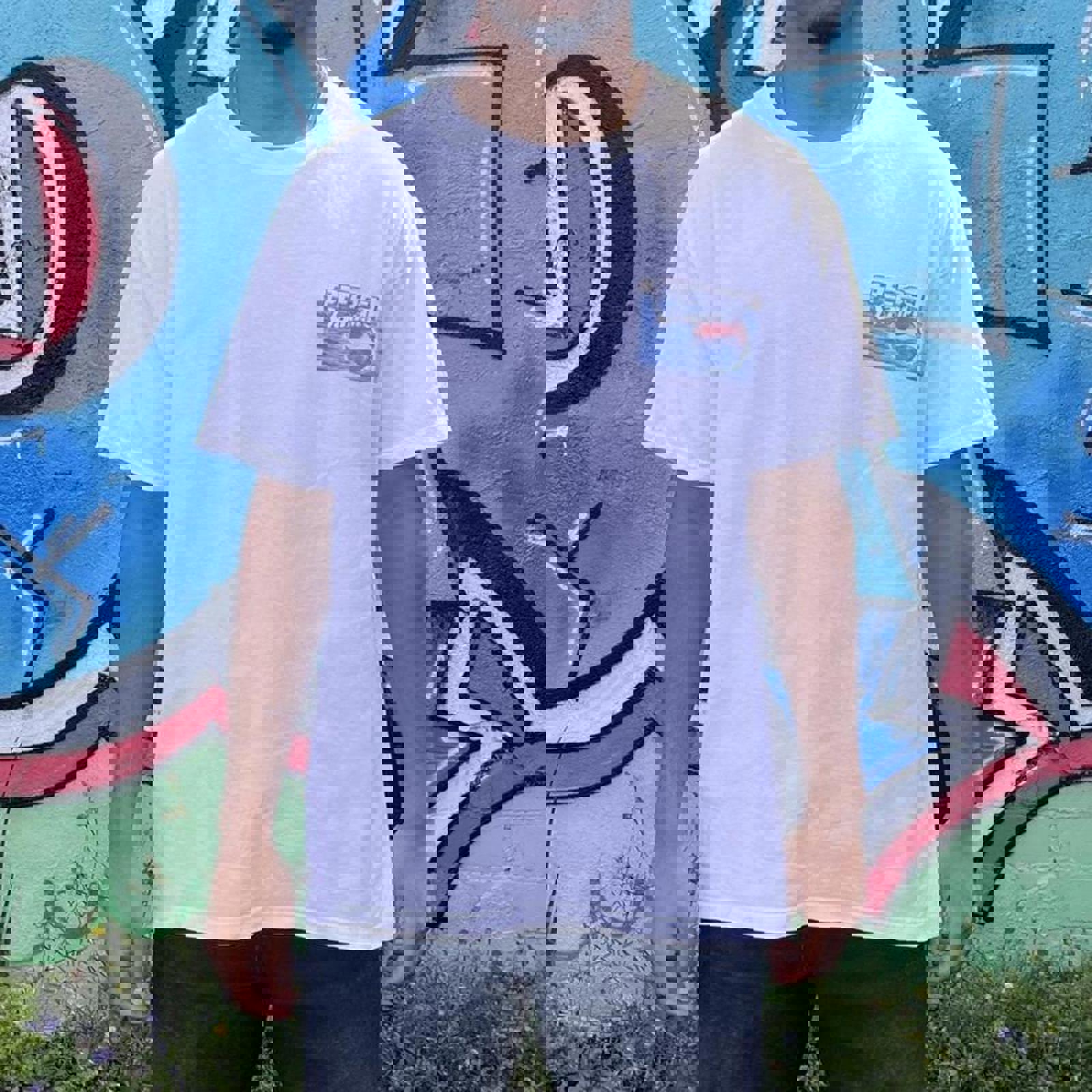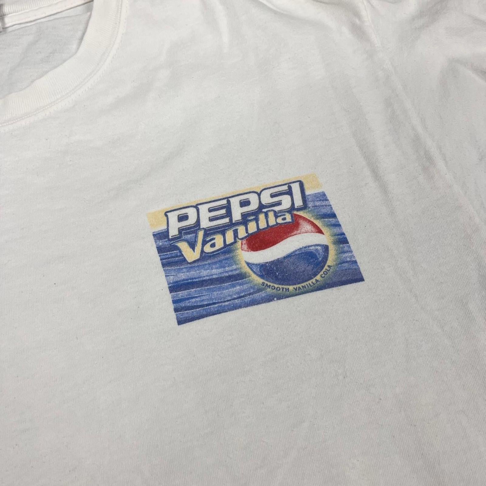 White Gildan tshirt with a vanilla Pepsi graphic on the chest