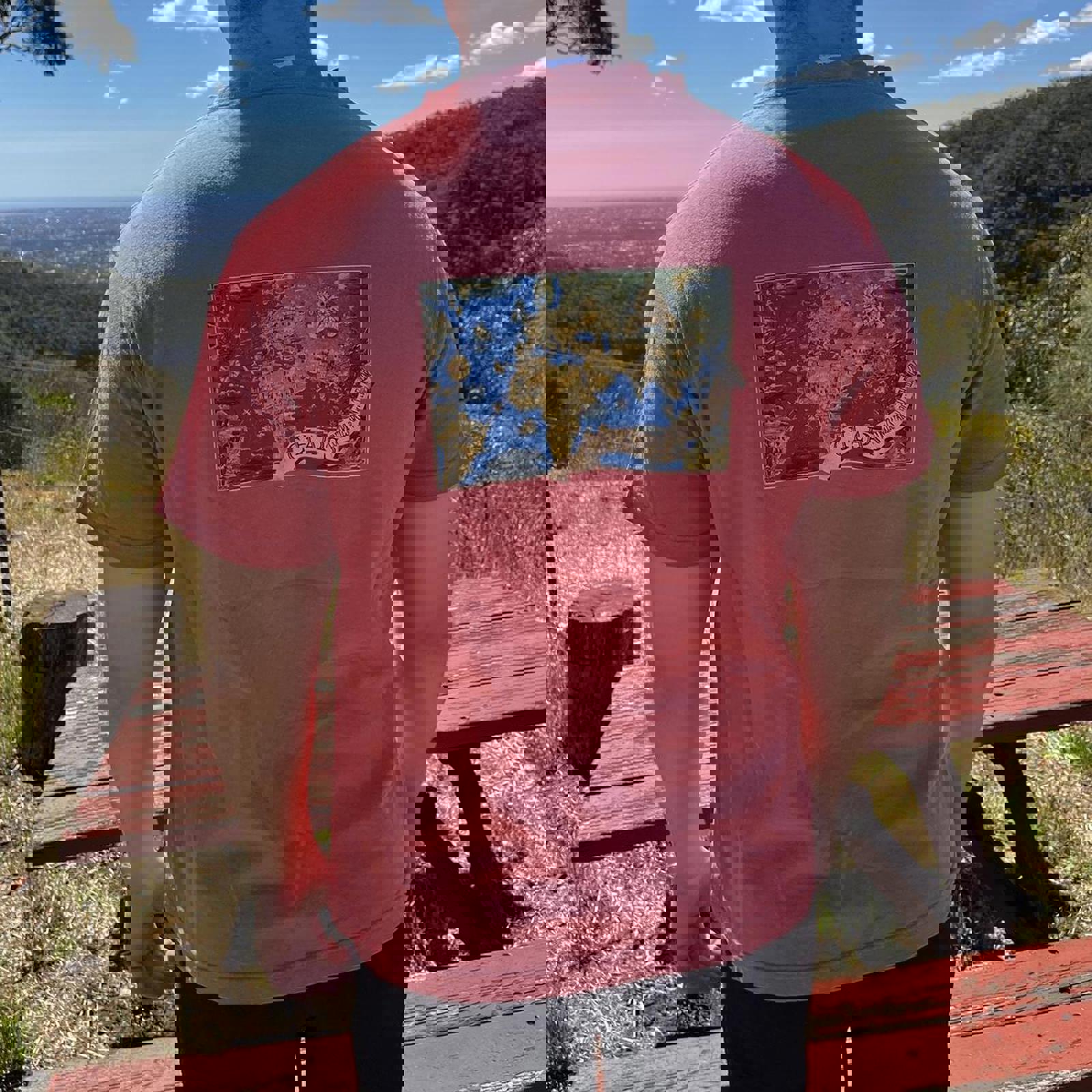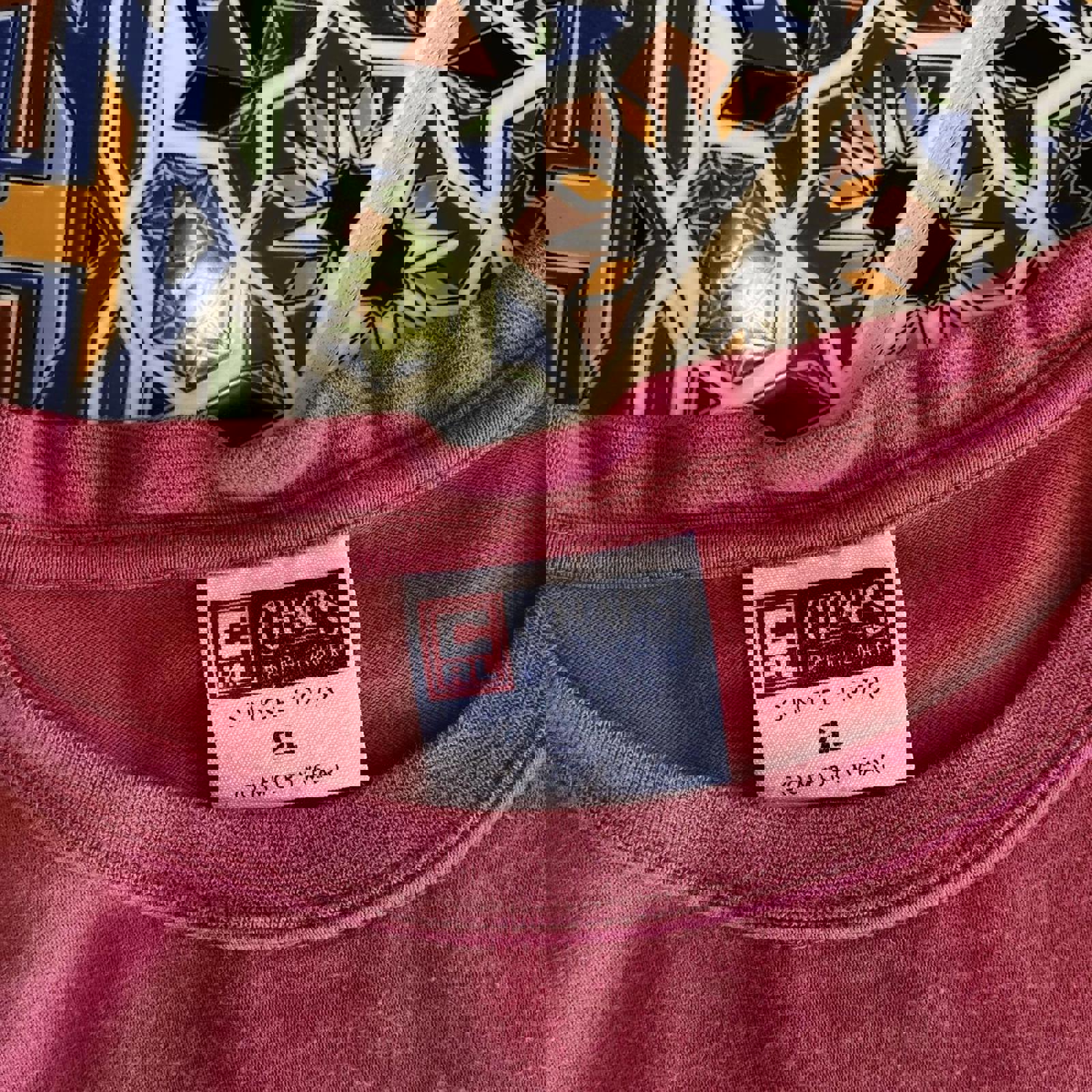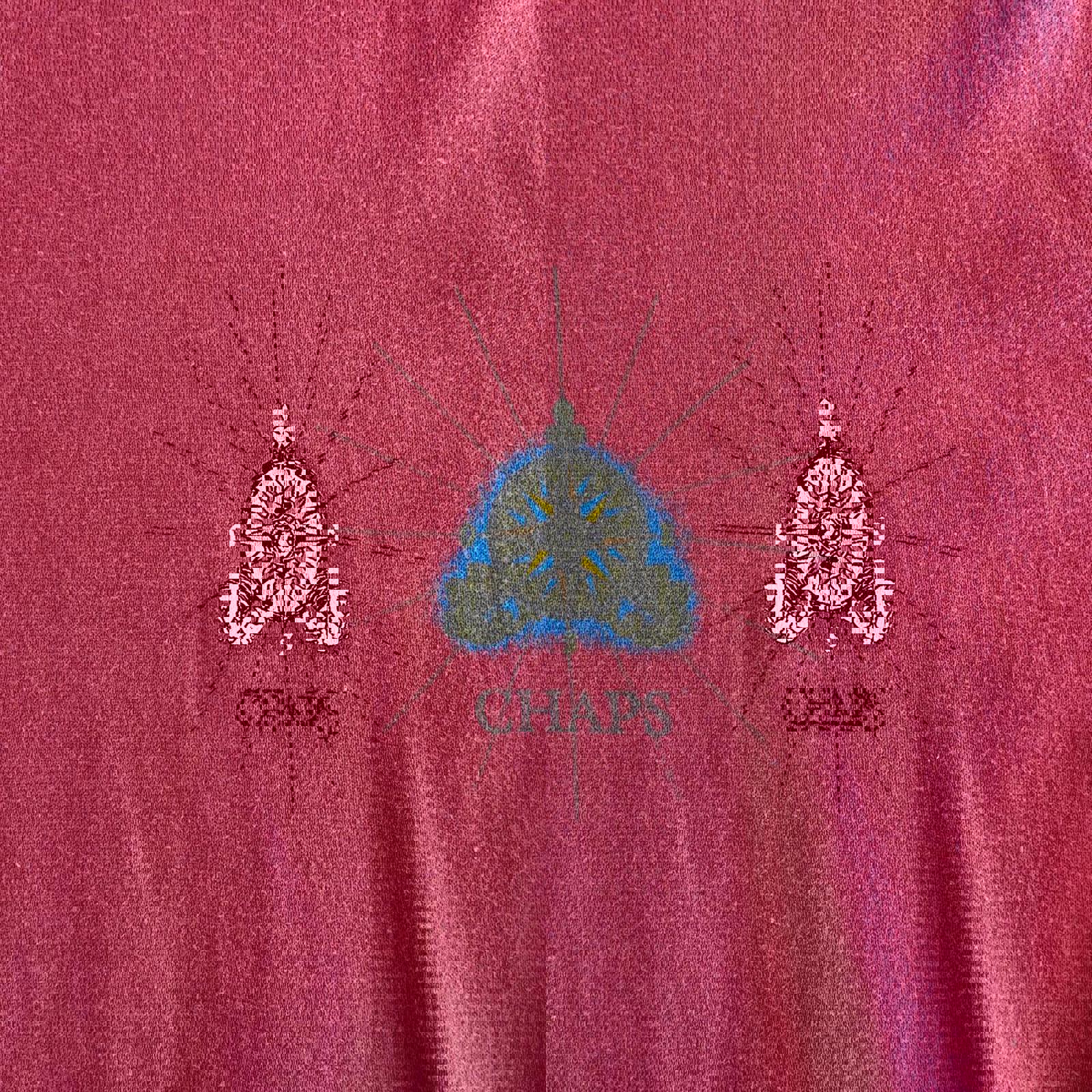 faint red tee with sick chaps graphics on the front and back super soft tee