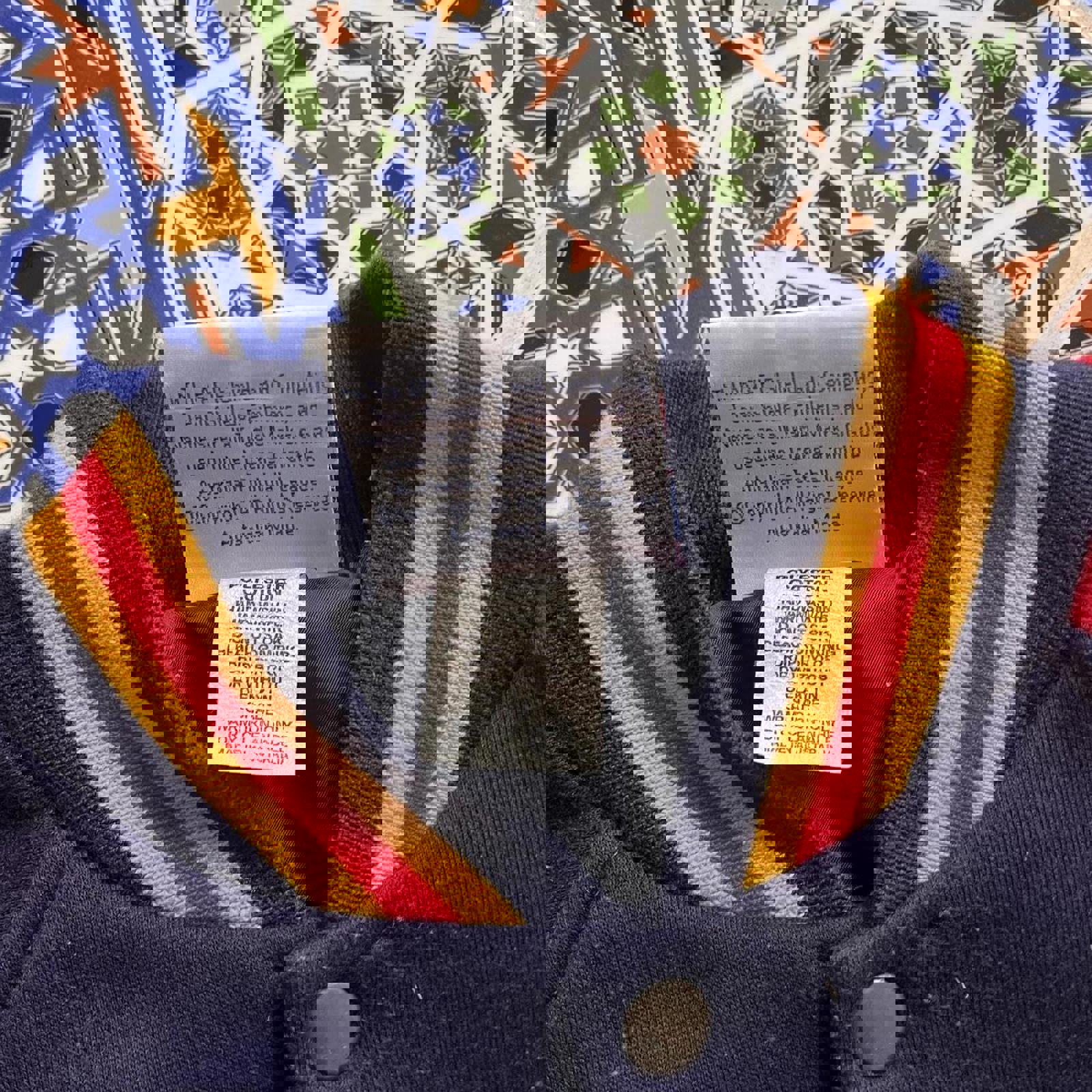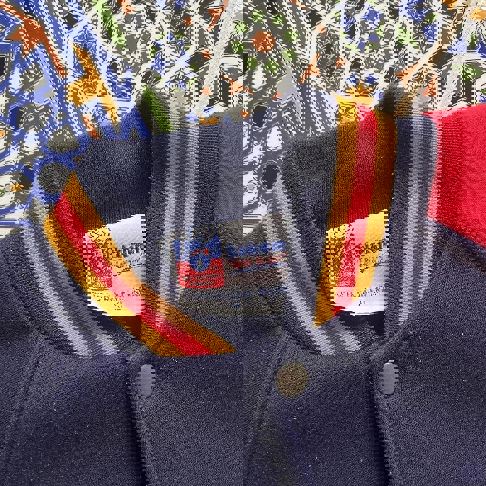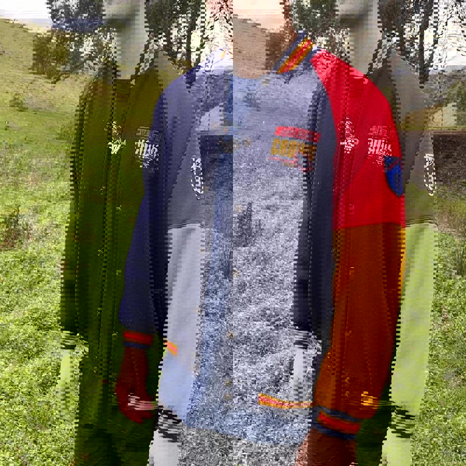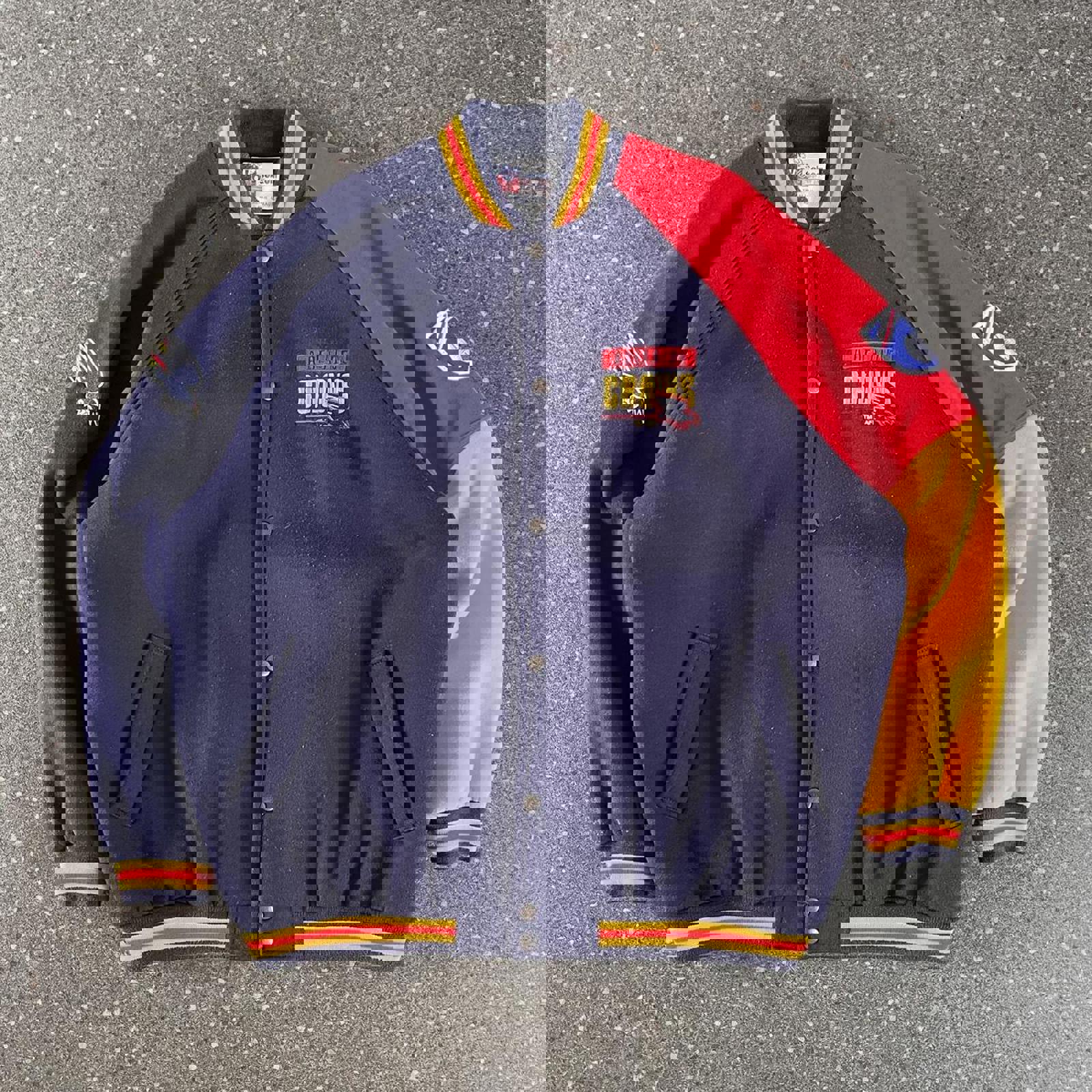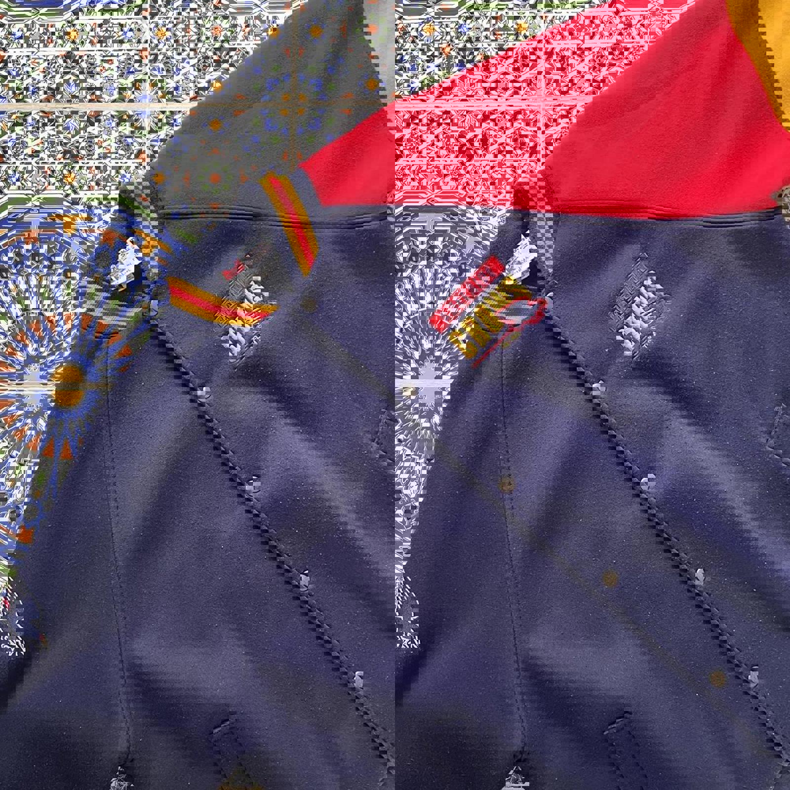 Navy, red and yellow Adelaide crows bomber jacket with embroidered logo on the chest and sleeves