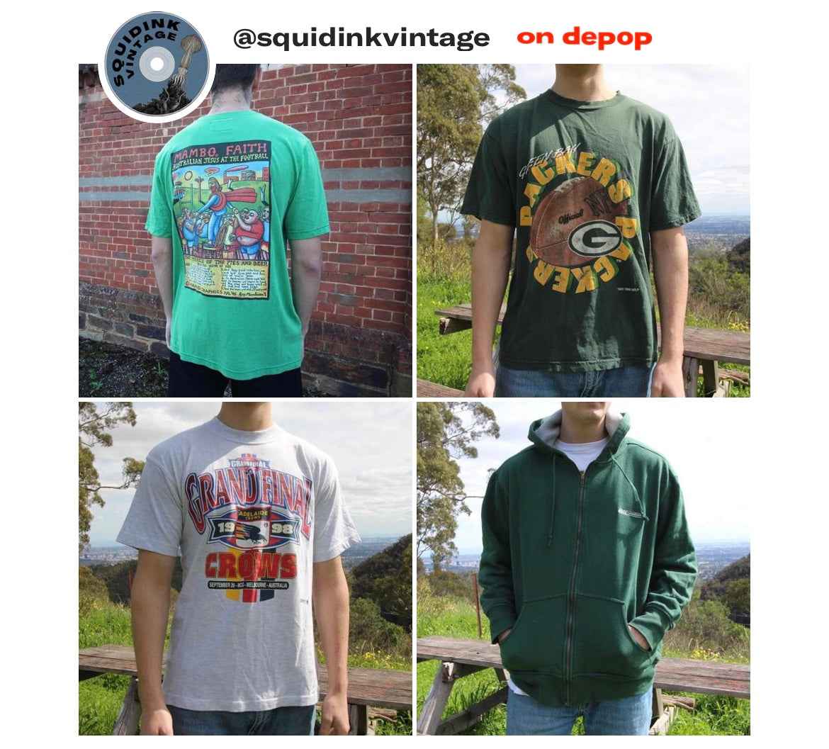 visit our depop for more sustanabily sourced vintage clothing items. Not all probducts from squid ink vintage are on this website. Items include cheaper branded clothing and new graphic tees