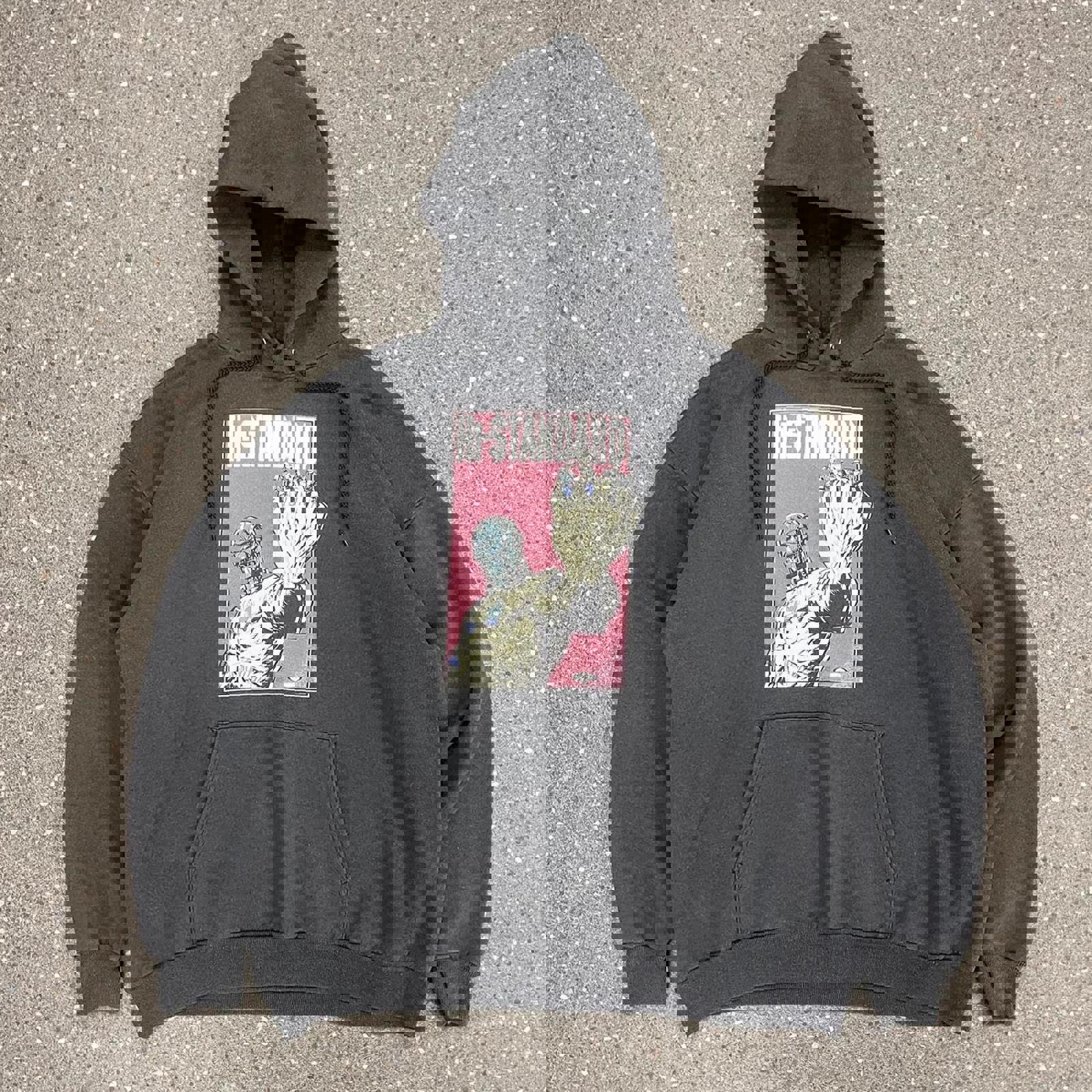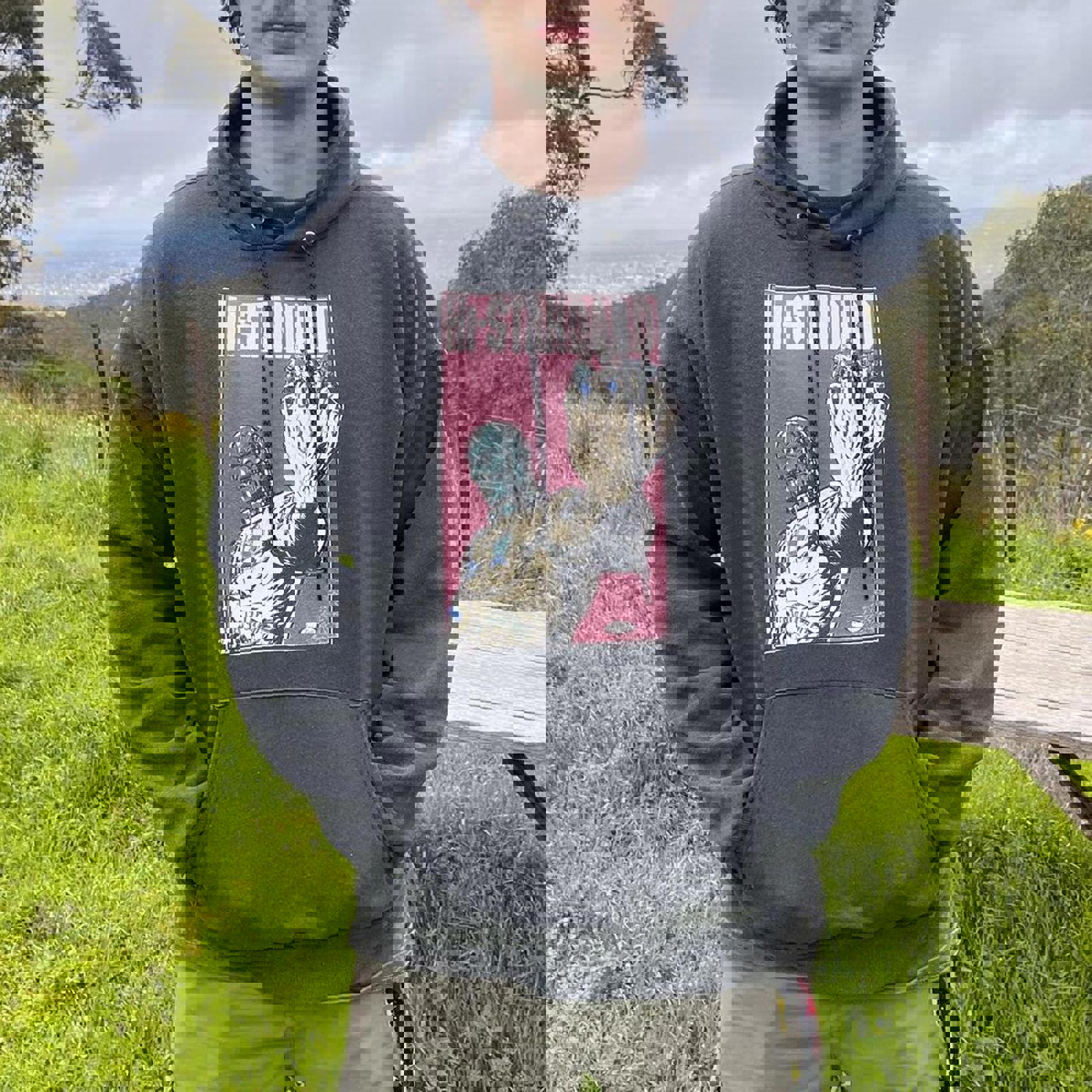 coal grey Hanes comfort-blend hoodie with a large Hi-Standard graphic on the front and large fat wreck chords graphic on the back