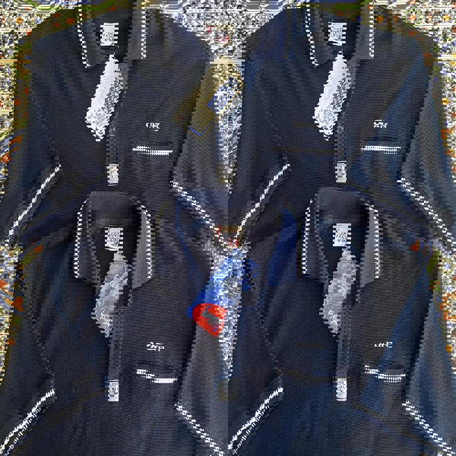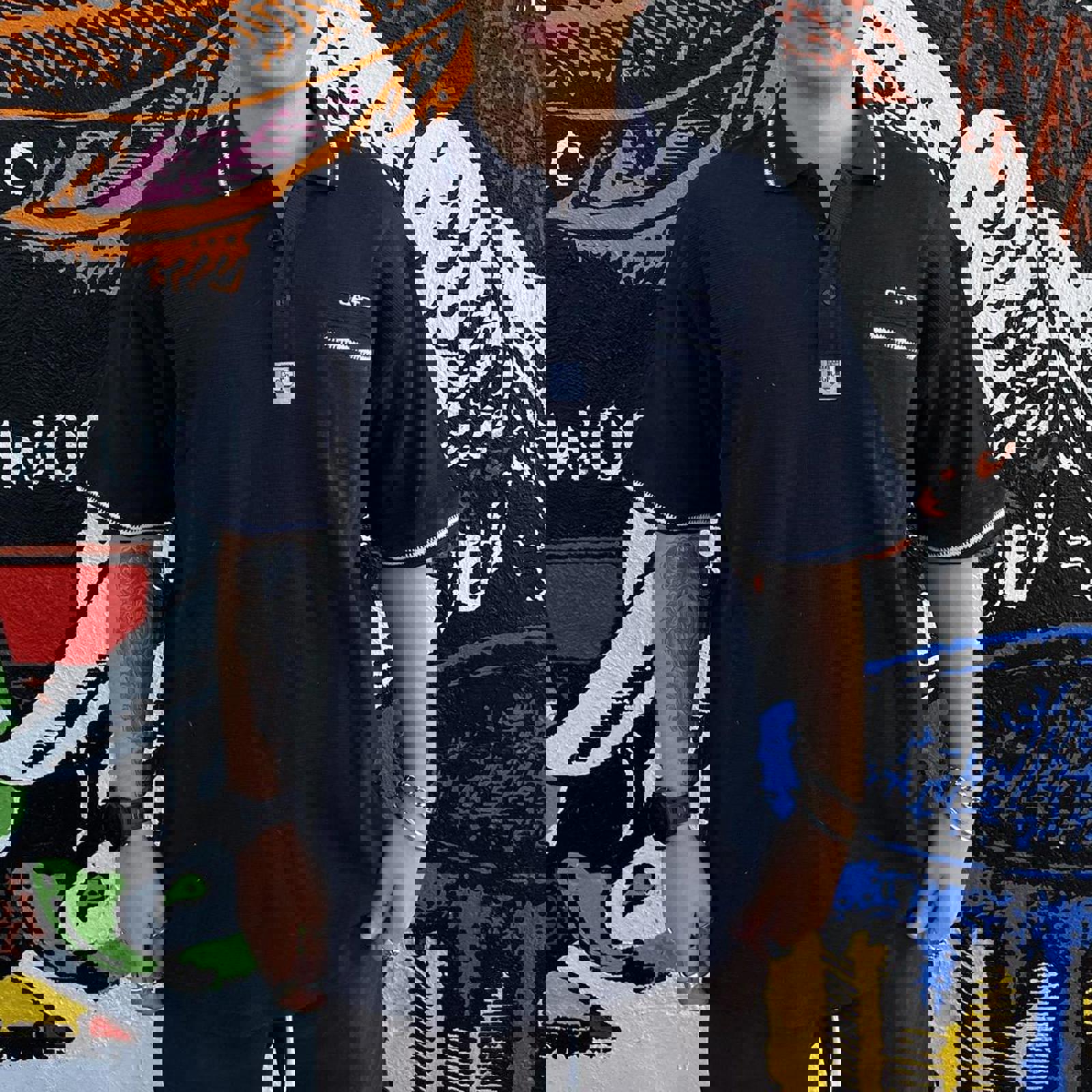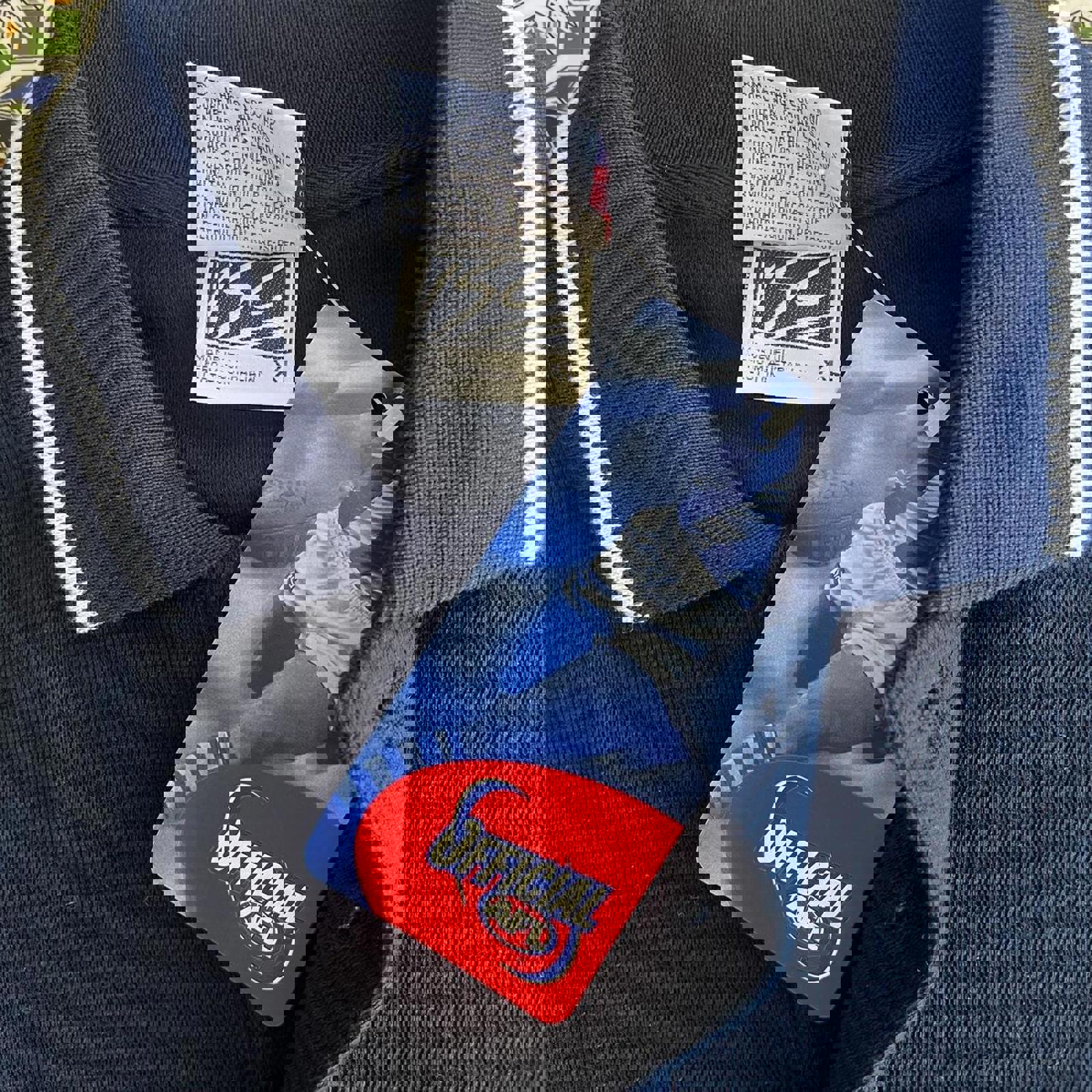 navy with white accents geelong cats heavy weight polo with embroidered cats on chest and geelong patch under the collar