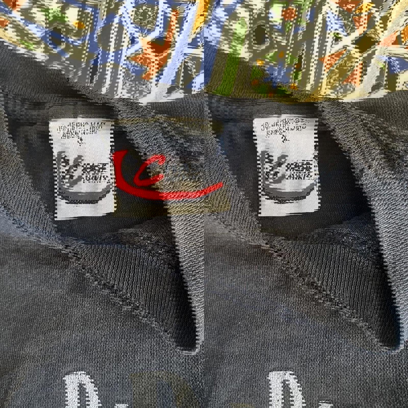 Black vintage chase authentics tee with large jack daniels Richard Childress racing graphic on the front in white and grey