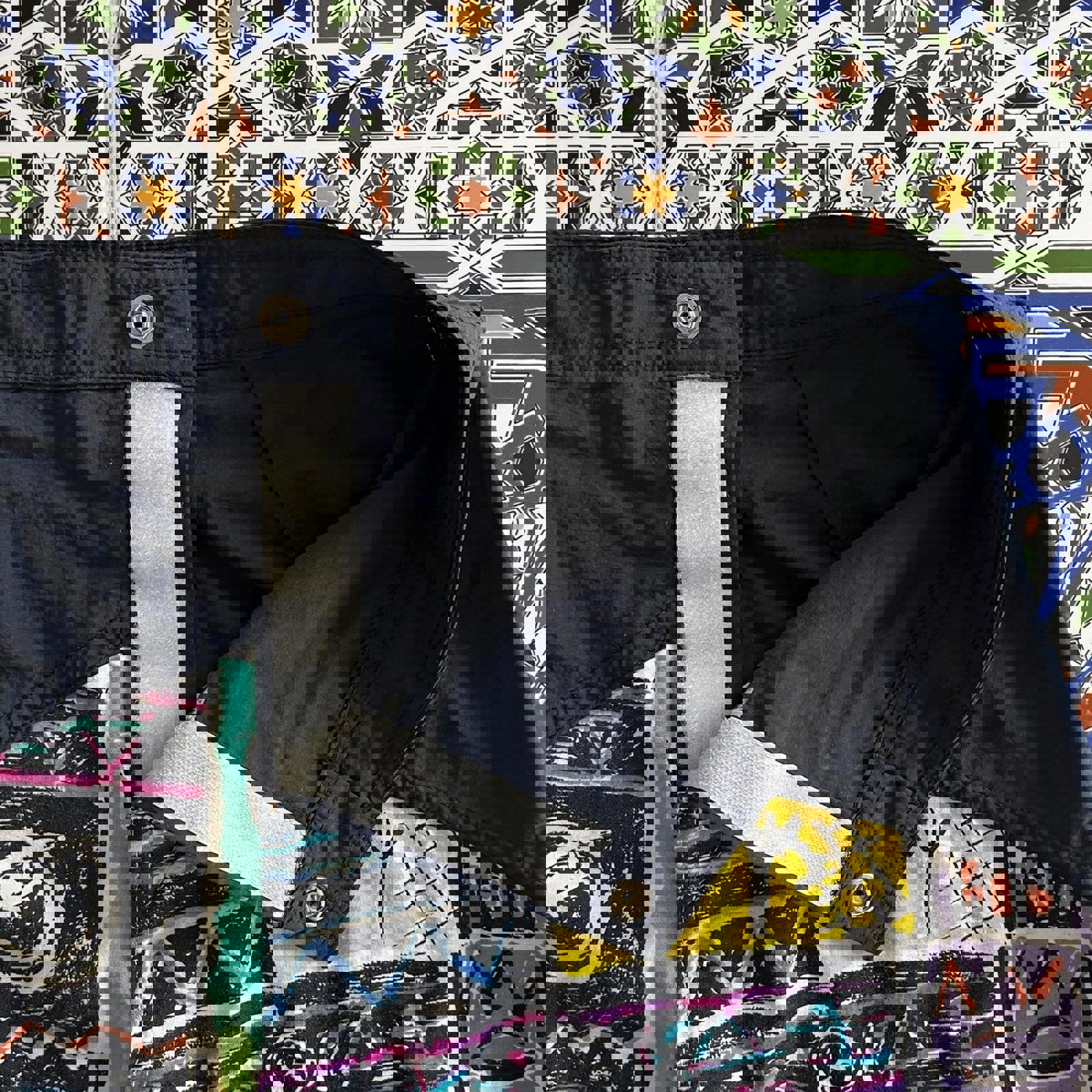 vintage piping hot board shorts with cool patch on the front and screen printed surfer on the back pocket