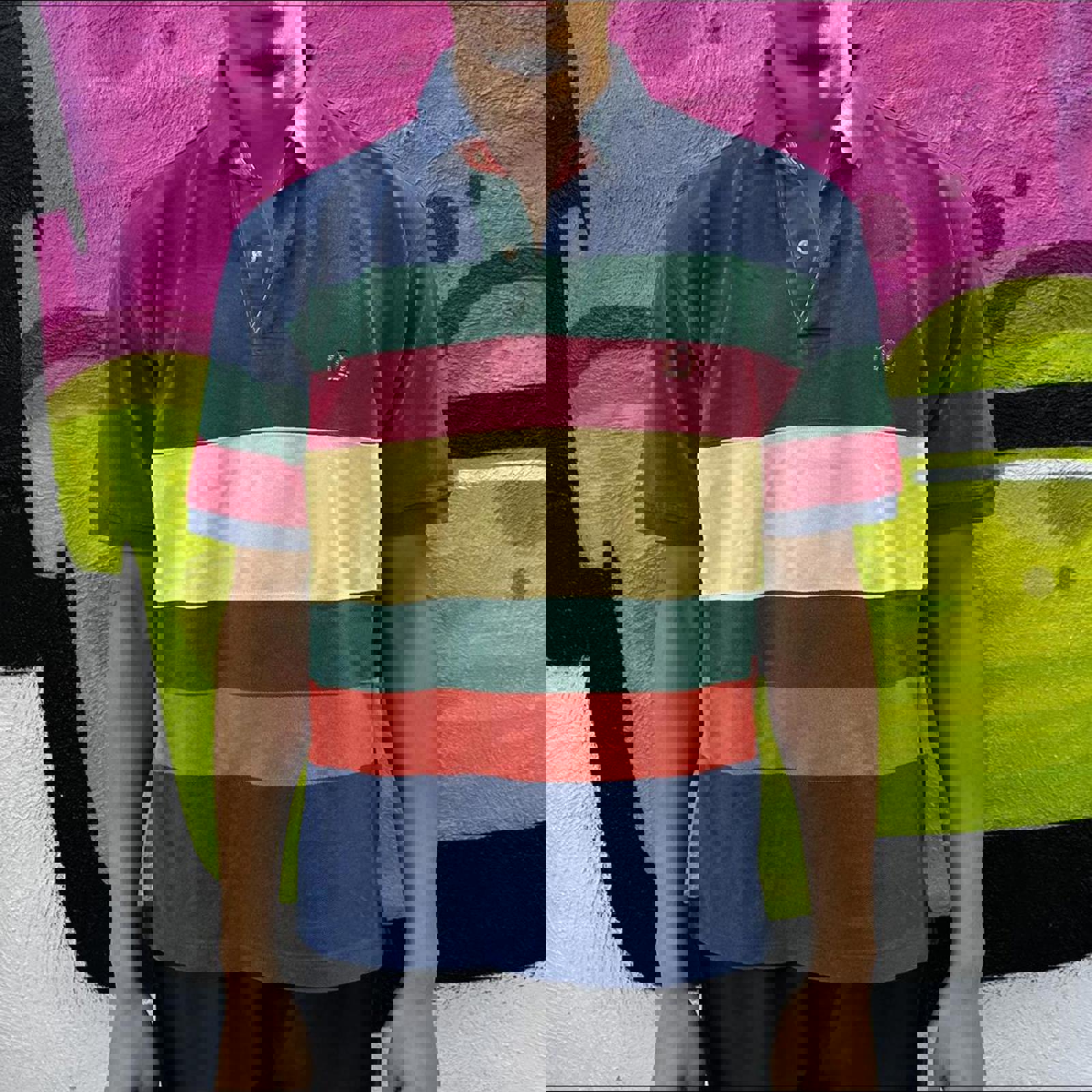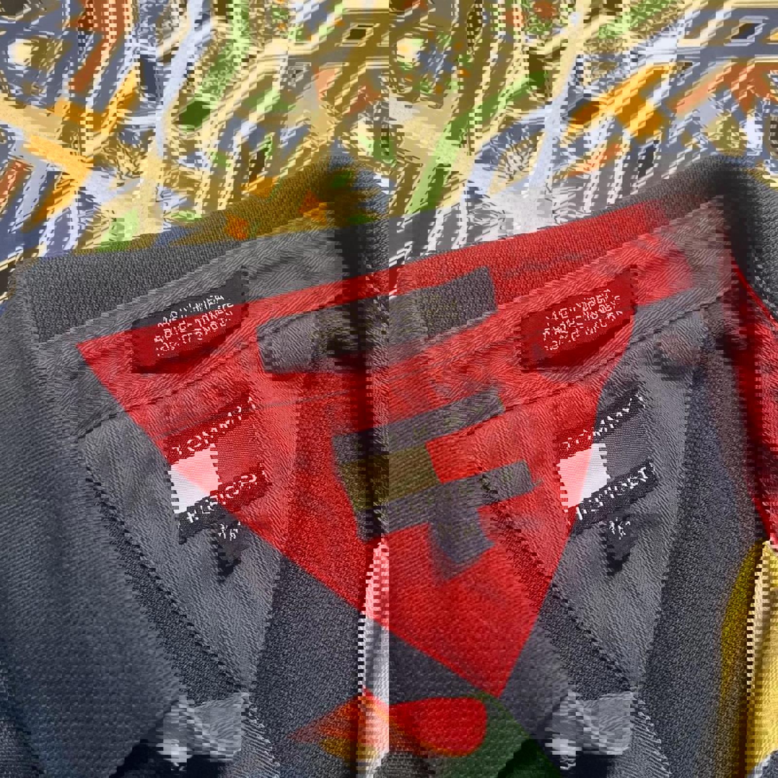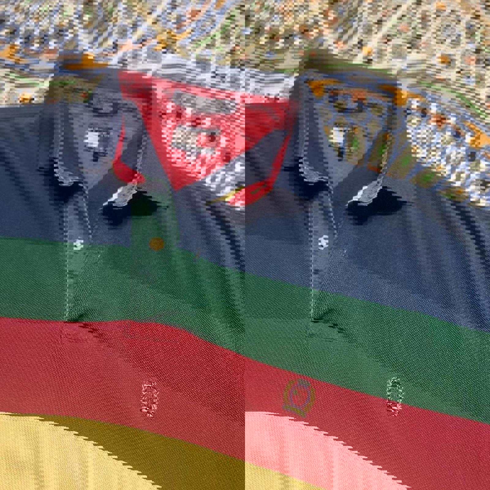 Navy, green, red, yellow and orange paneling Classic Tommy Hilfiger crest logo 100% cotton
