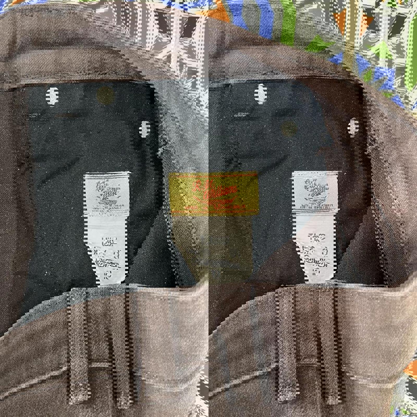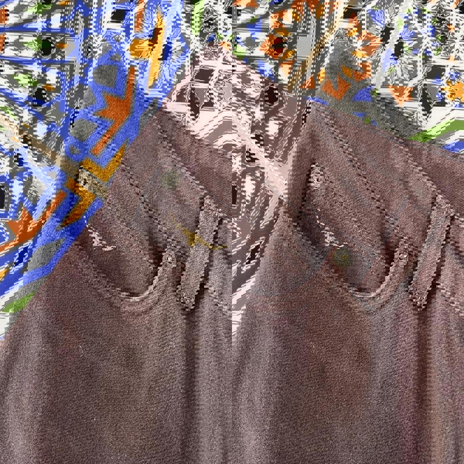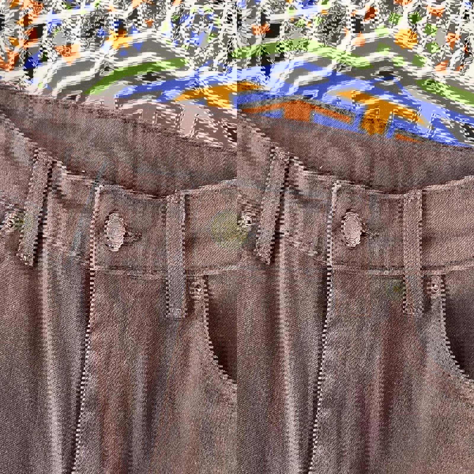 Brown RM Williams women’s skinny legged pants with a tan bull on the coin pocket